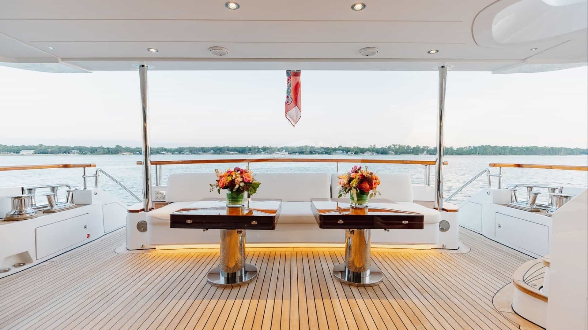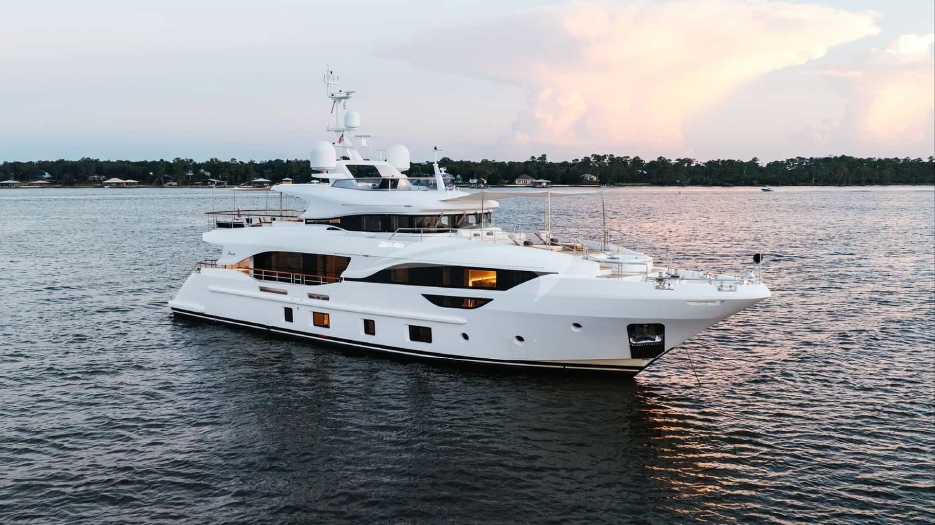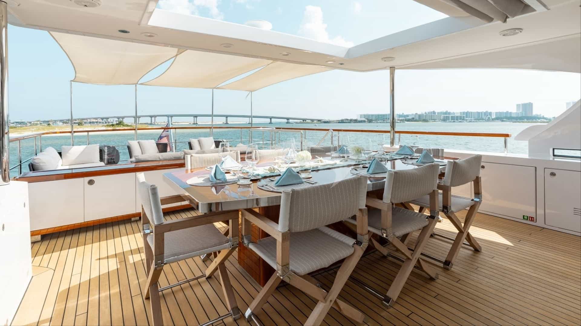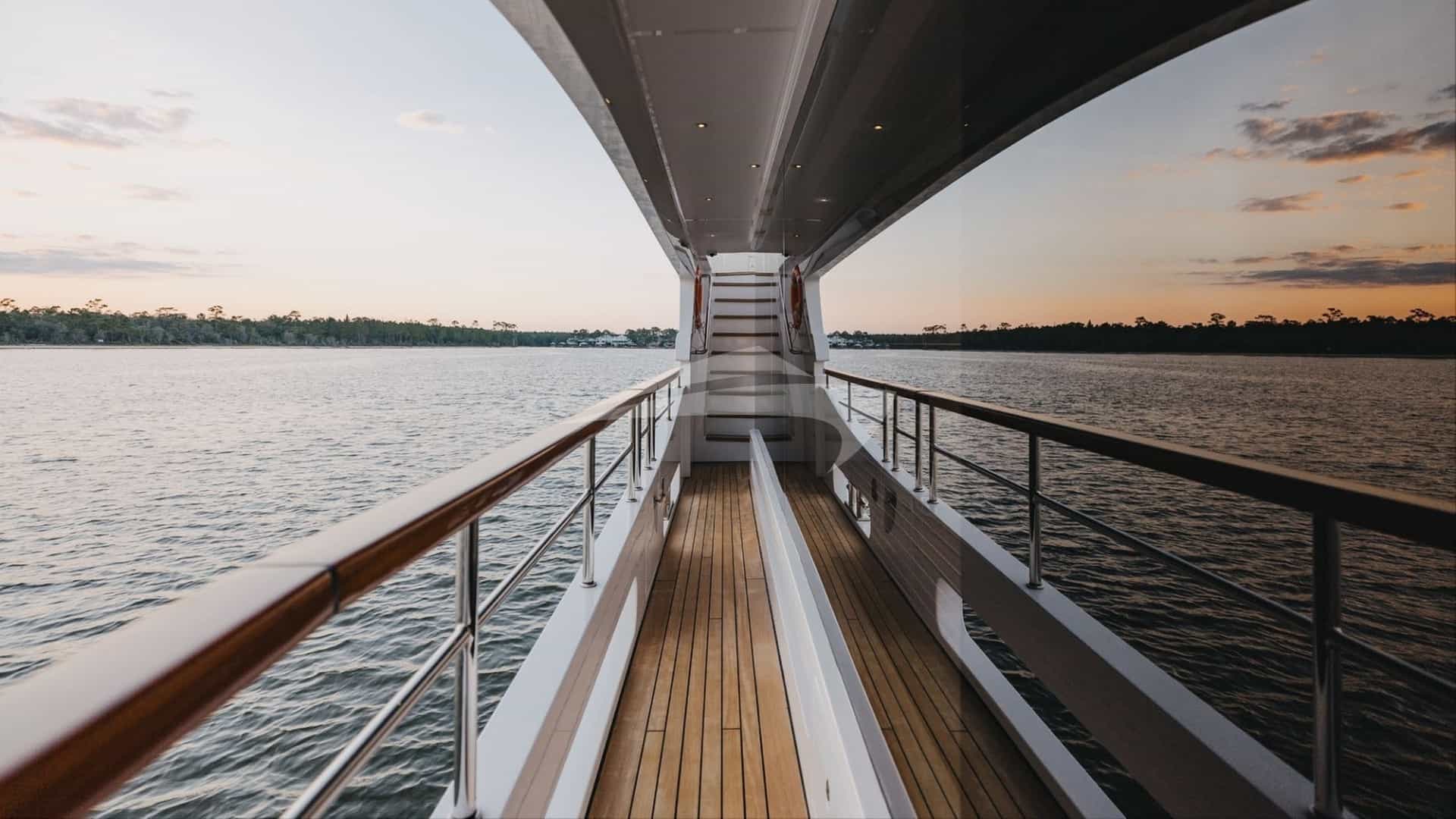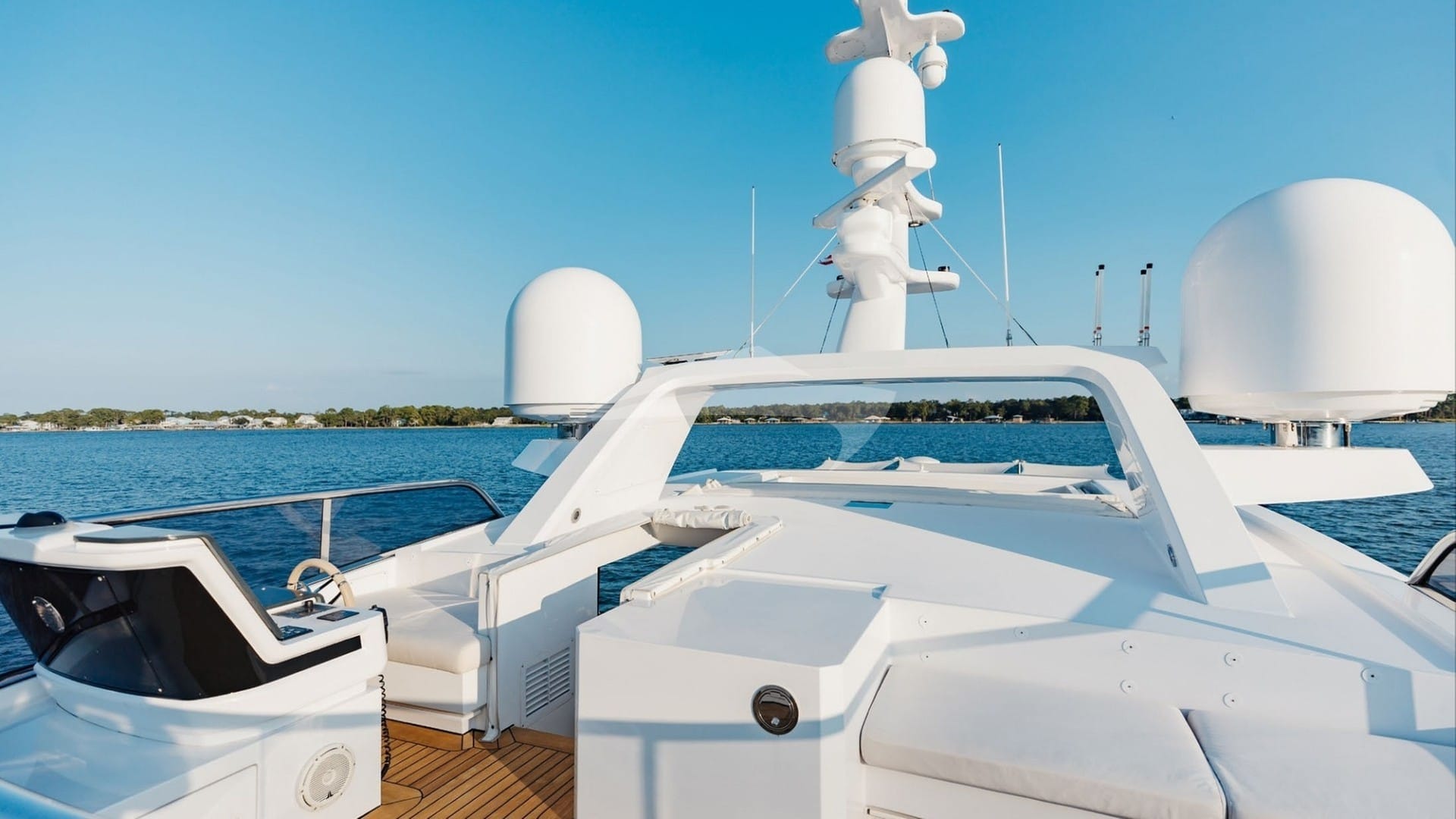 Amenities on board for the charter guests include Air Conditioning, Beach club, Jacuzzi on deck, Stabilisers At Anchor, Sun pads, Sun Deck, Swim platform and Tender Garage.