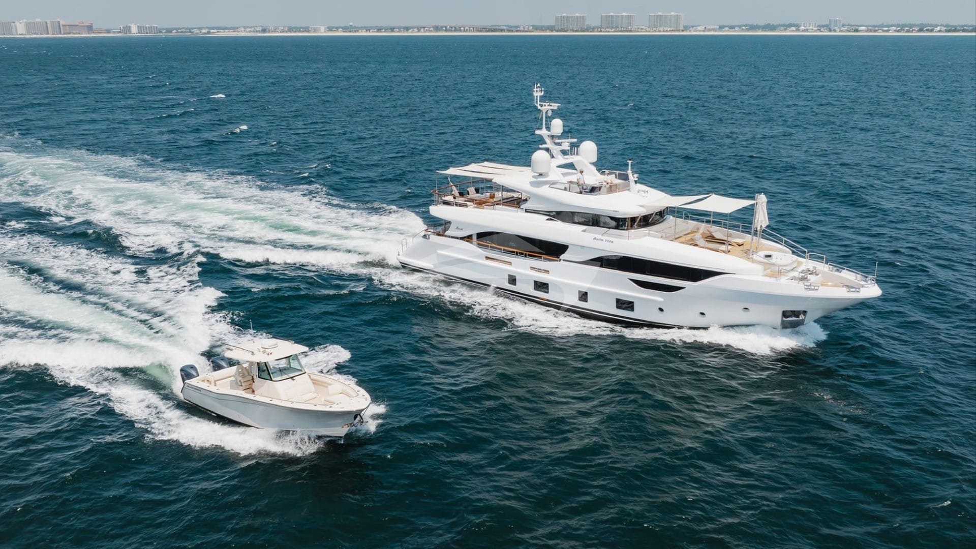 - 1x 33'10 / 10.3m Technohull Sea DNA 999 Chase Tender 900 HP engine