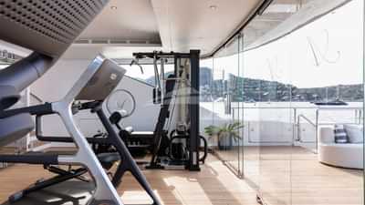 Amenities on board for the charter guests include Air Conditioning, BBQ, Beach club, Elevator, Gym, Jacuzzi on deck, Stabilisers and Wi-Fi.