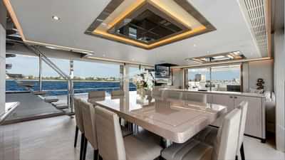 Amenities on board for the charter guests include Air Conditioning, Jacuzzi on deck, Satellite TV and Wi-Fi.