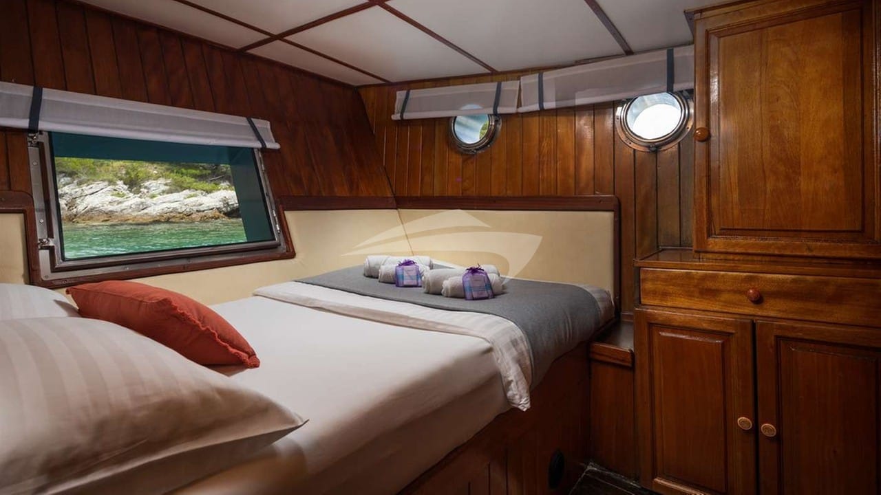 GIDEON can accommodate 16 sleeping guests on board in 8 cabins.