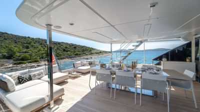 Amenities on board for the charter guests include Air Conditioning, Jacuzzi on deck and Stabilisers At Anchor.
