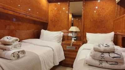 YALOOU DREAM can accommodate 7 sleeping guests on board in 3 cabins.