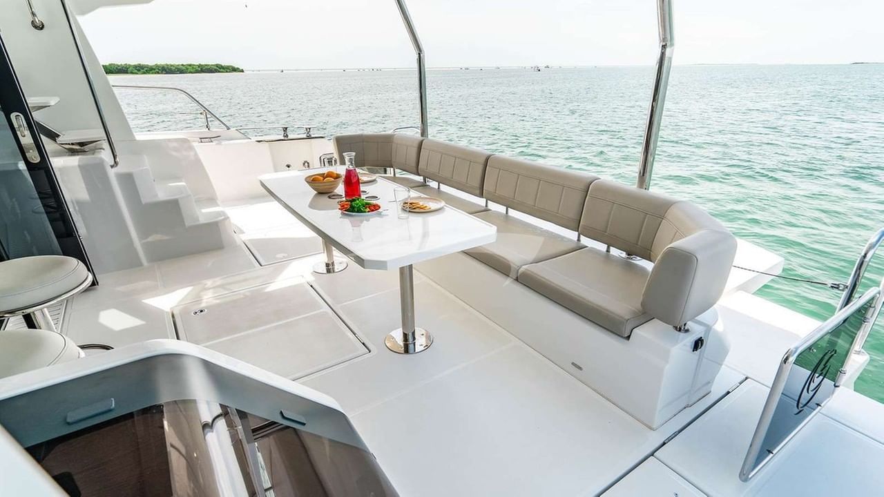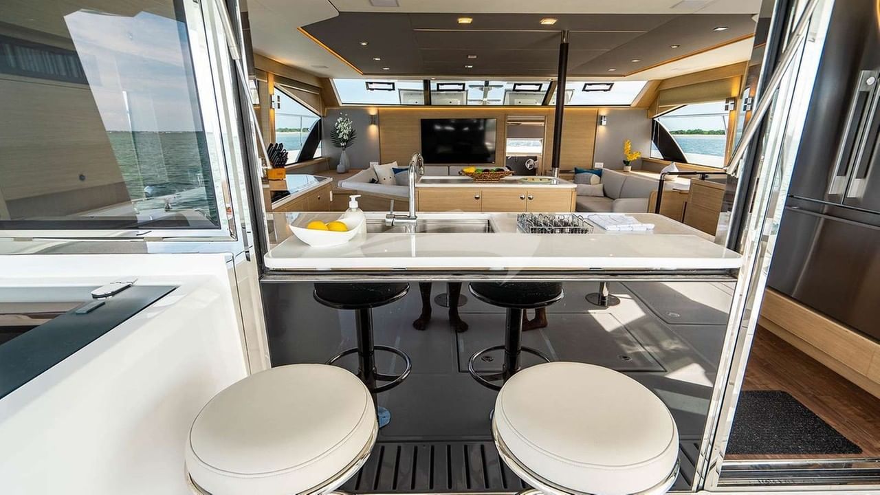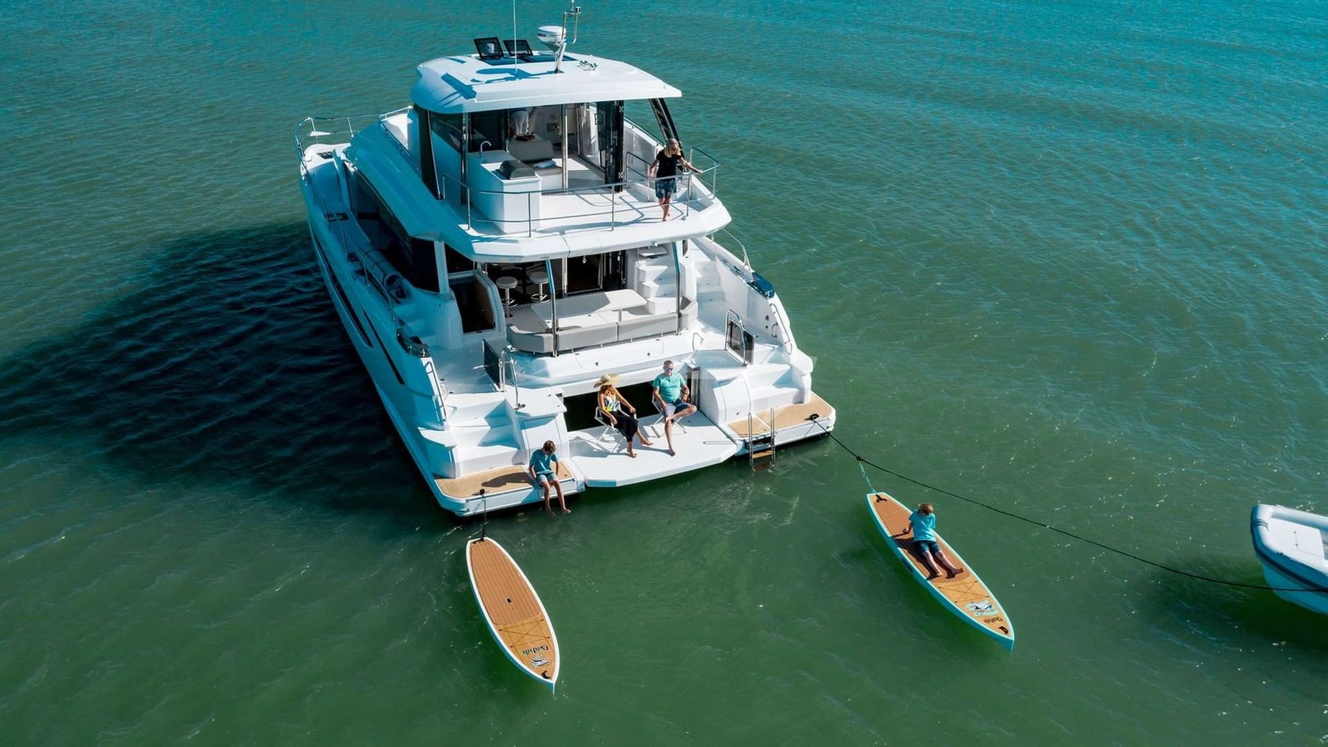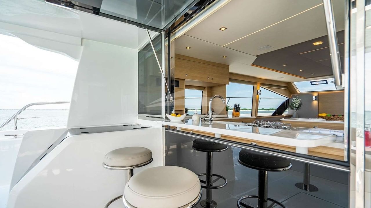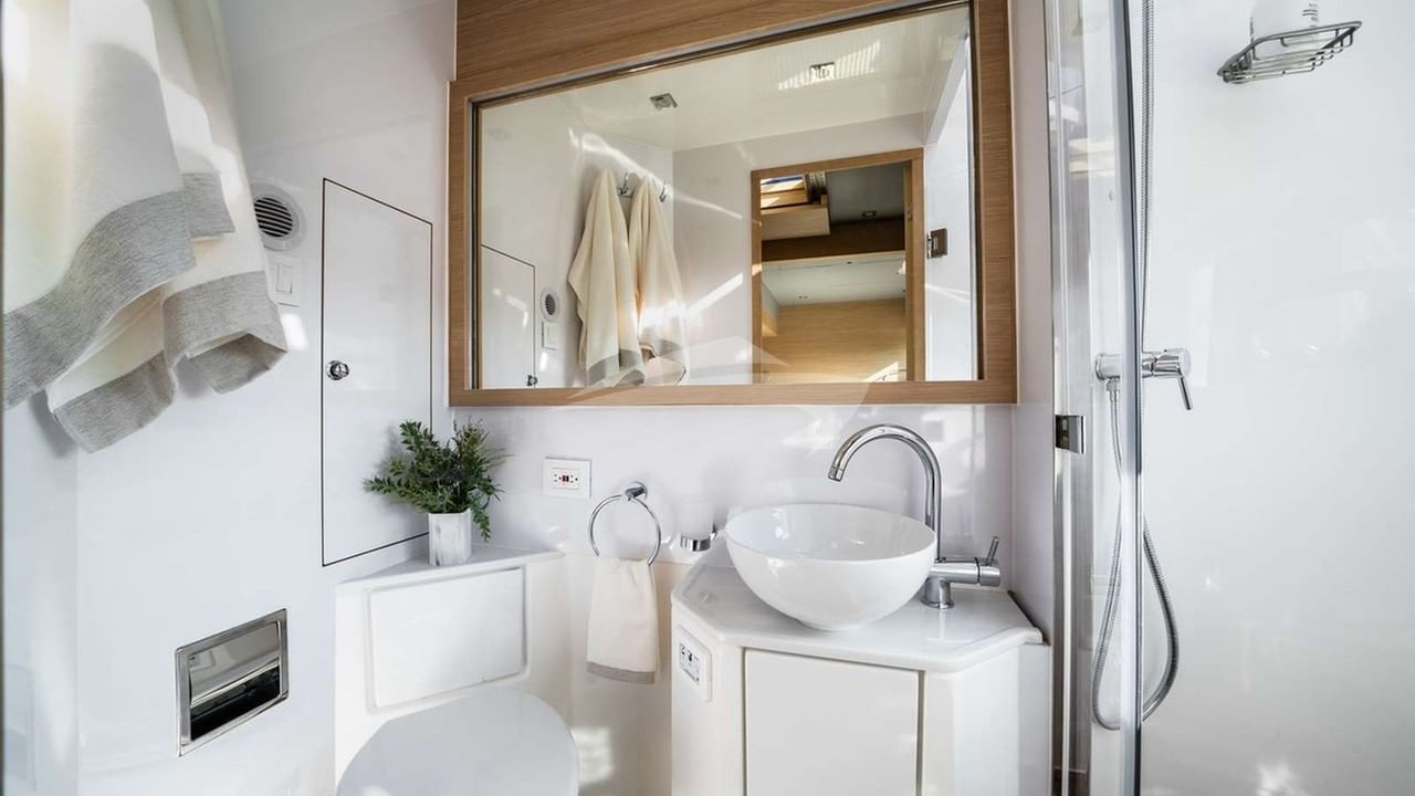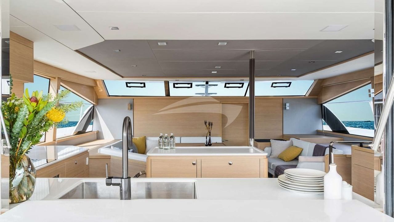 Amenities on board for the charter guests include Air Conditioning, BBQ, Outdoor shower, Indoor audio system, iPod dock, TV saloon and Wi-Fi.