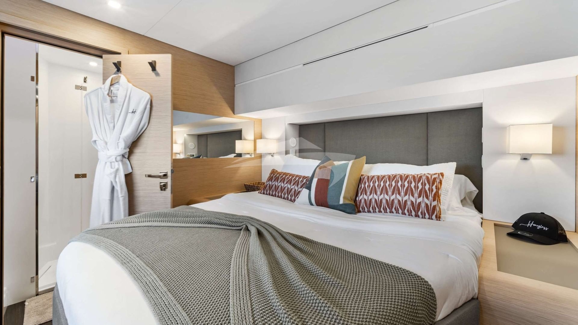 HOURGLASS can accommodate 8 sleeping guests on board in 4 cabins.