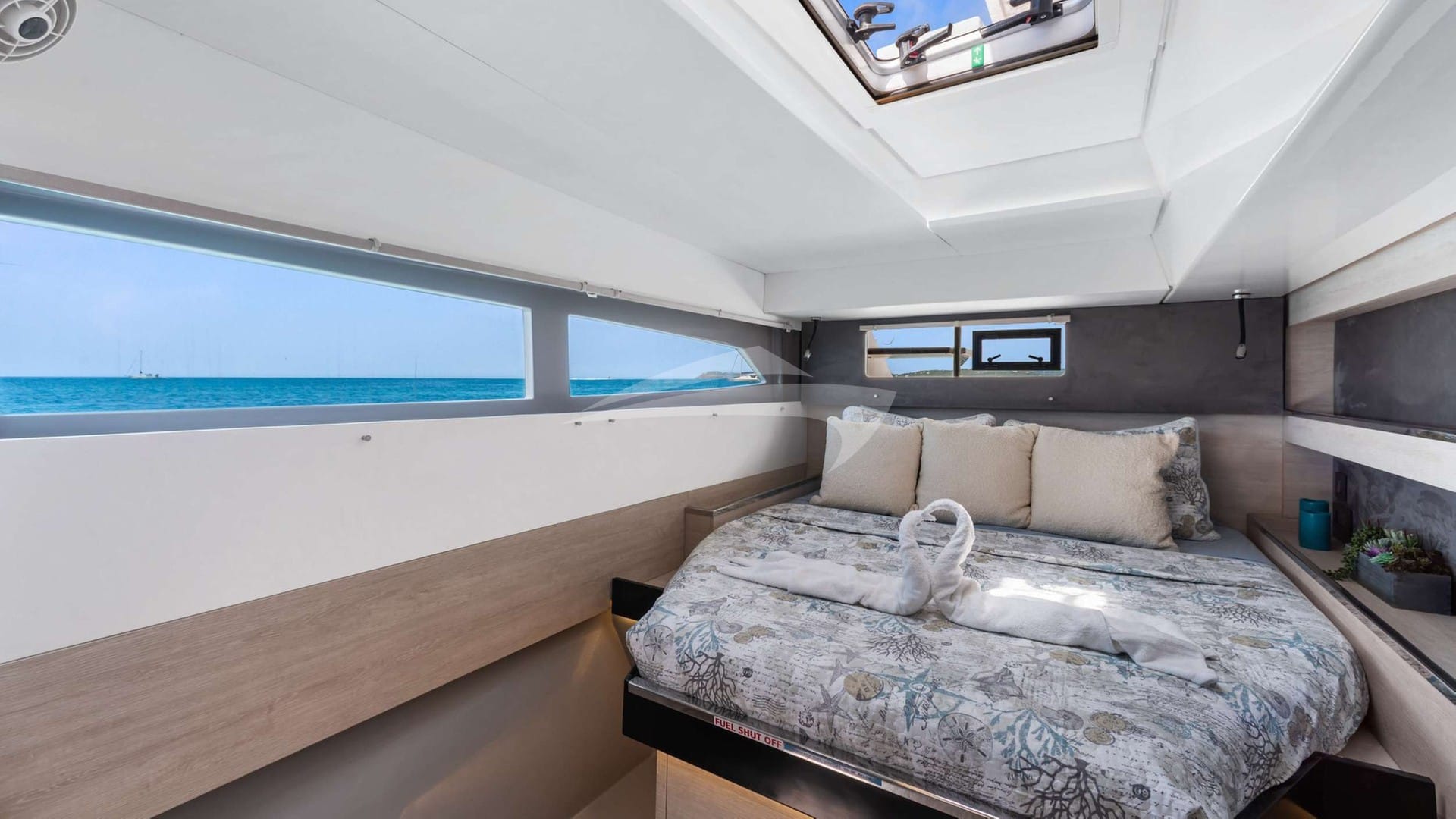 ONE II LOVE can accommodate 6 sleeping guests on board in 3 cabins.