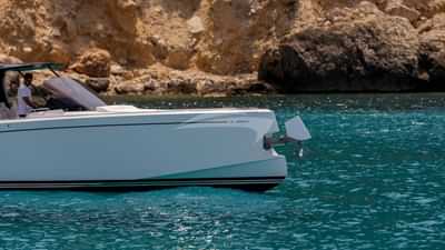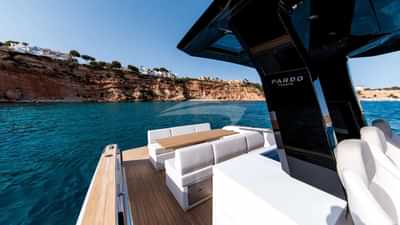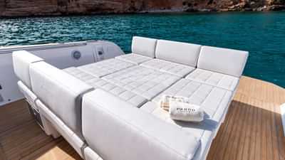 Amenities on board include Air Conditioning, Outdoor shower, Indoor audio system, iPod dock, Stabilisers At Anchor, Swim platform, TV saloon and Wi-Fi.