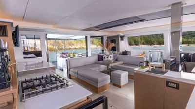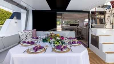 Amenities on board for the charter guests include Air Conditioning, BBQ, Outdoor shower, Big game fishing gear, Indoor audio system, Swim platform, TV saloon and Wi-Fi.