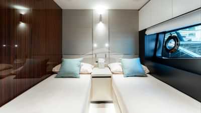 The guest cabins comprise a primary suite with a king size bed and en-suite bathroom facilities located on the lower deck, a VIP suite with a queen size bed and en-suite bathroom facilities and 2 cabins with a twin bed and en-suite bathroom facilities.