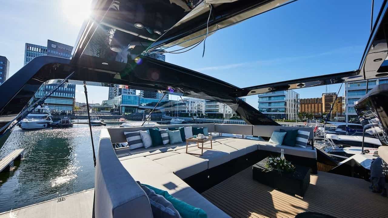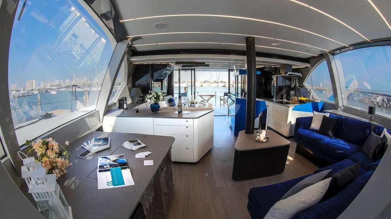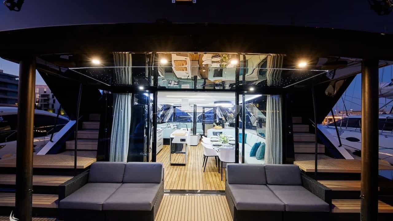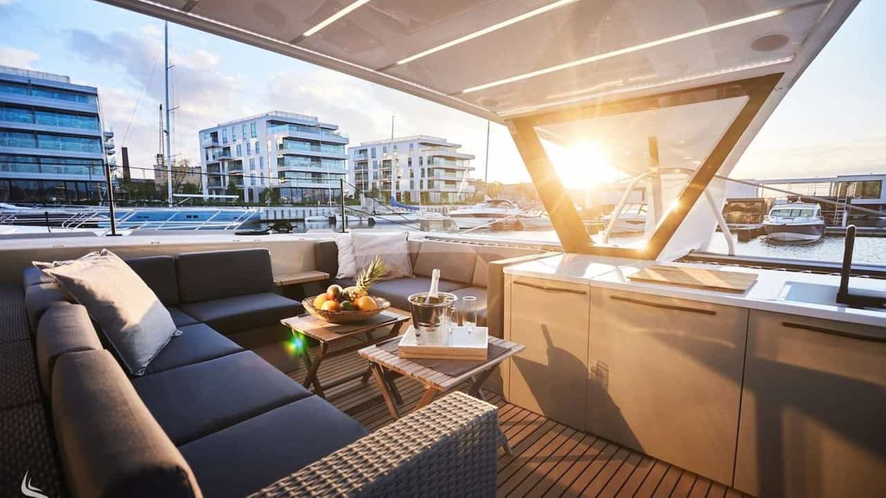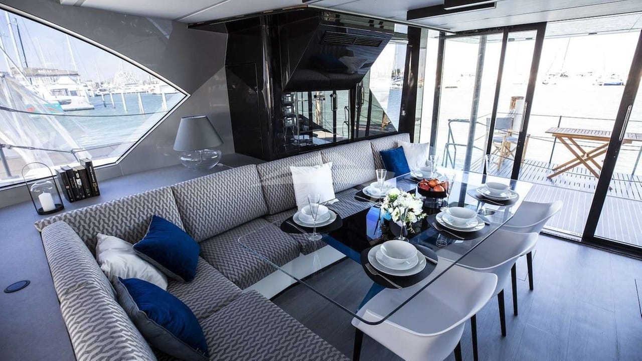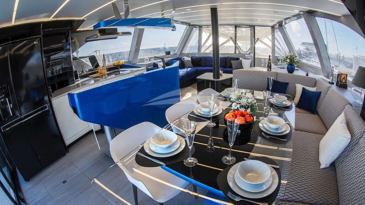 Amenities on board for the charter guests include Air Conditioning, Outdoor shower, Indoor audio system, iPod dock, TV saloon and Wi-Fi.