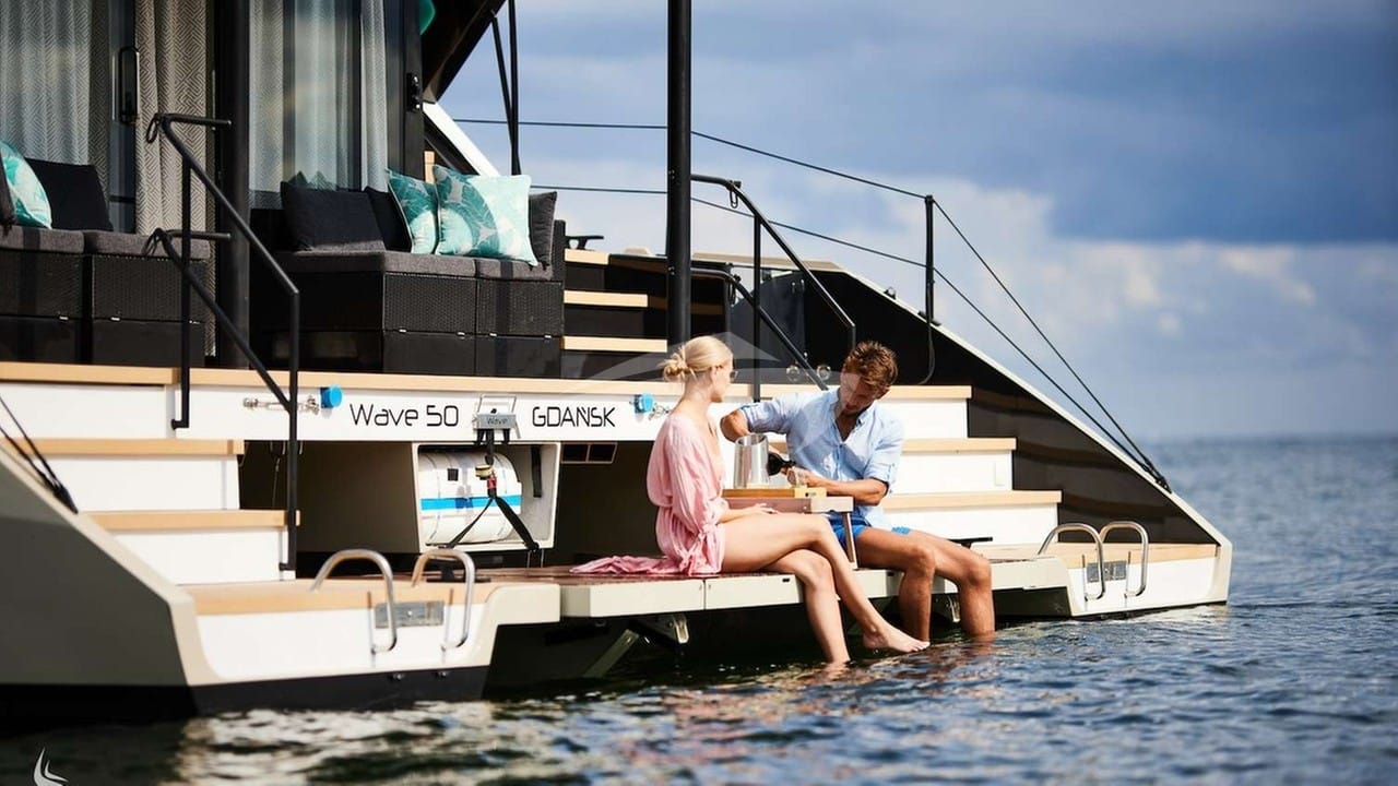 WAVE can accommodate 8 sleeping guests on board in 4 cabins.