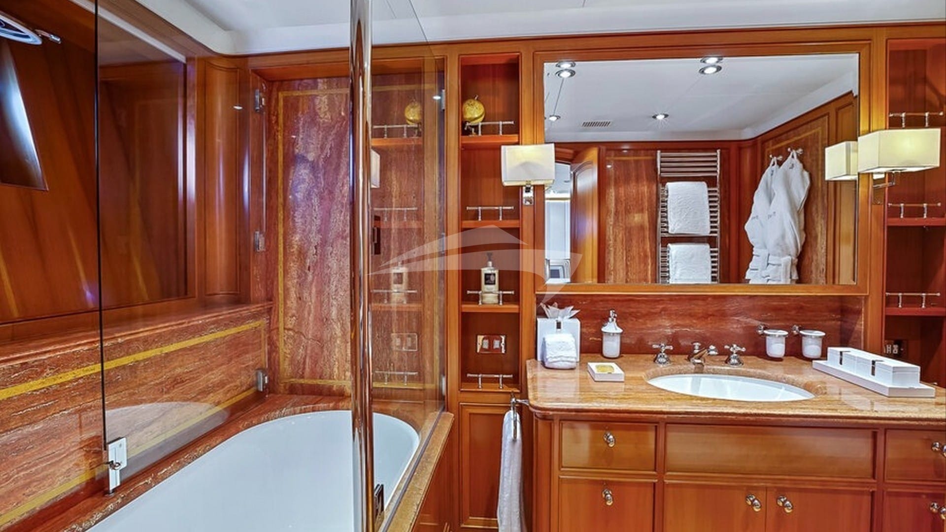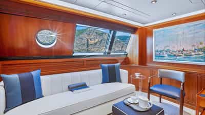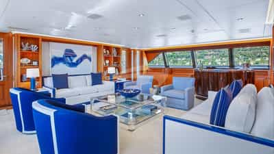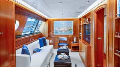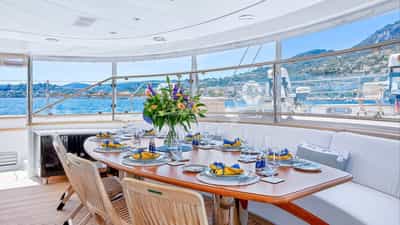 Amenities on board for the charter guests include Air Conditioning, Jacuzzi on deck, Satellite TV and Wi-Fi.