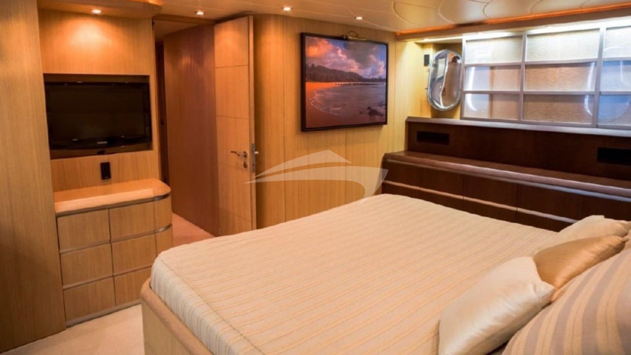 TEMPTATION DELTA can accommodate 8 guests in 4 cabins consisting of 2 cabins with a double bed and en-suite bathroom facilities, a primary suite with a double bed and en-suite bathroom facilities and a cabin with a twin bed and en-suite bathroom facilities.