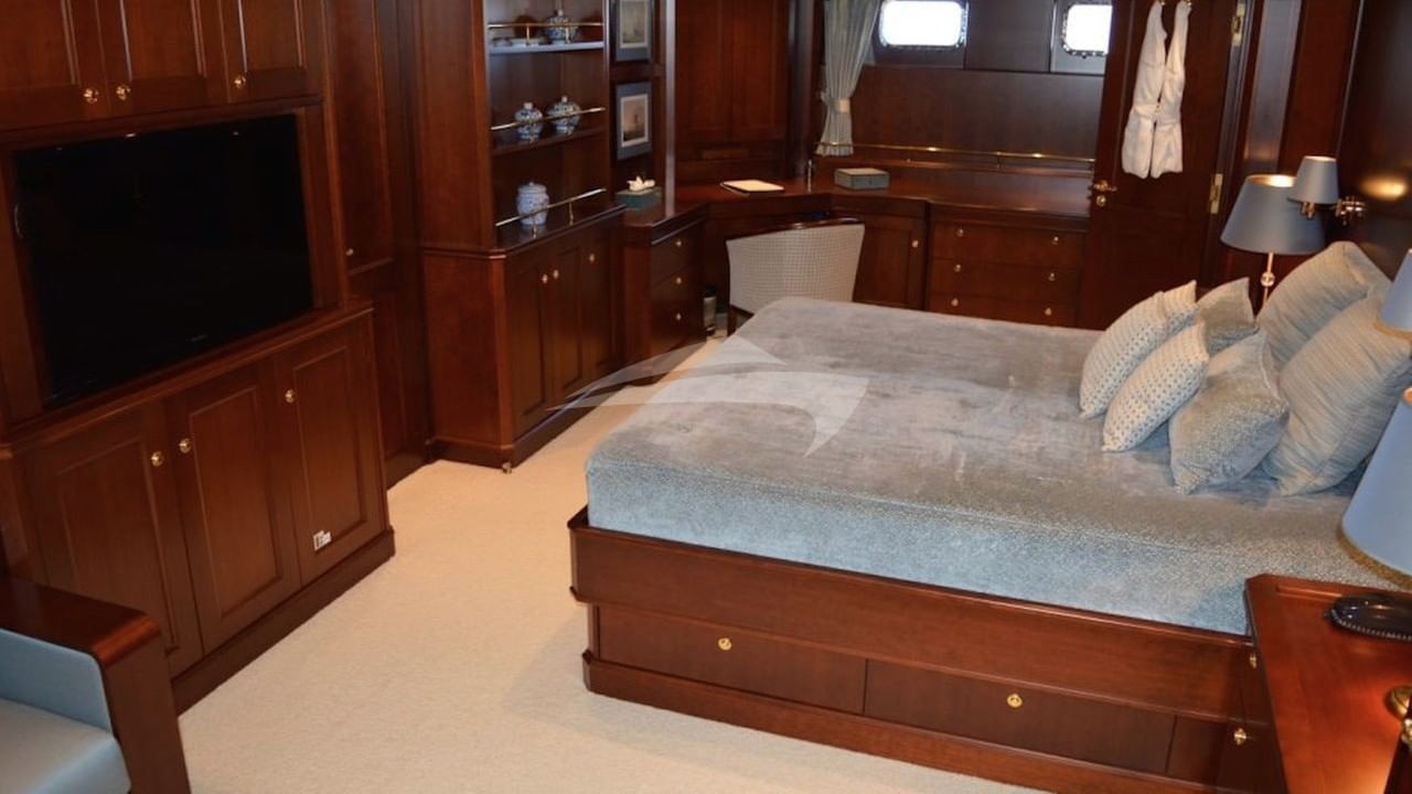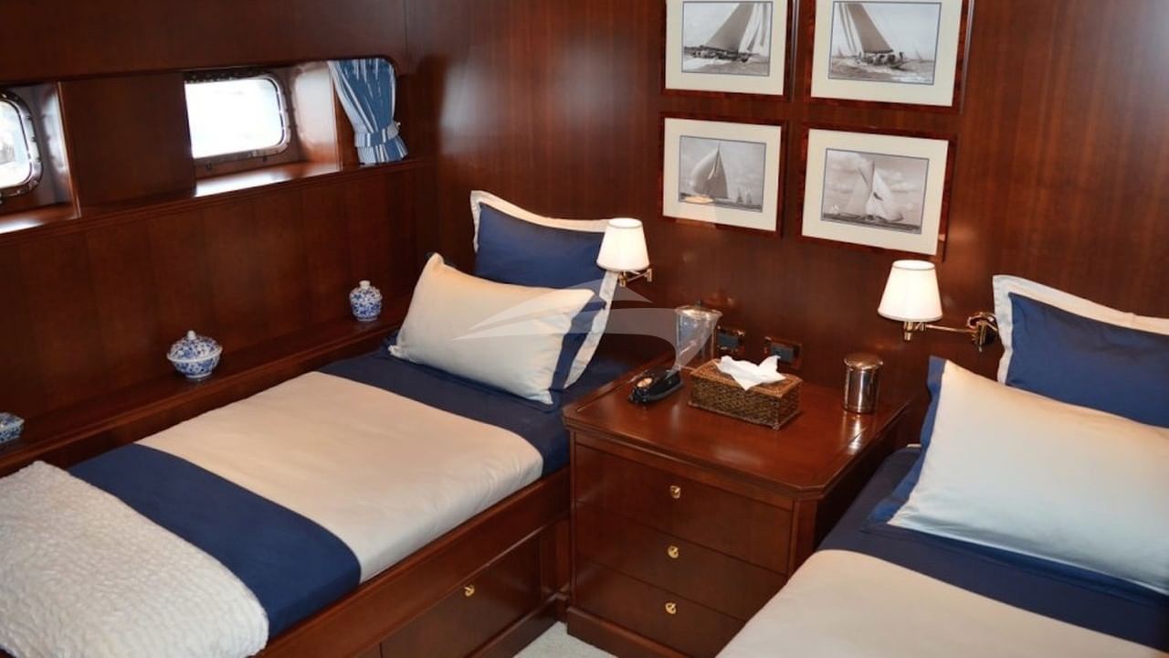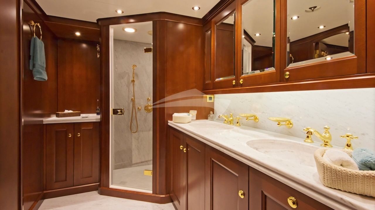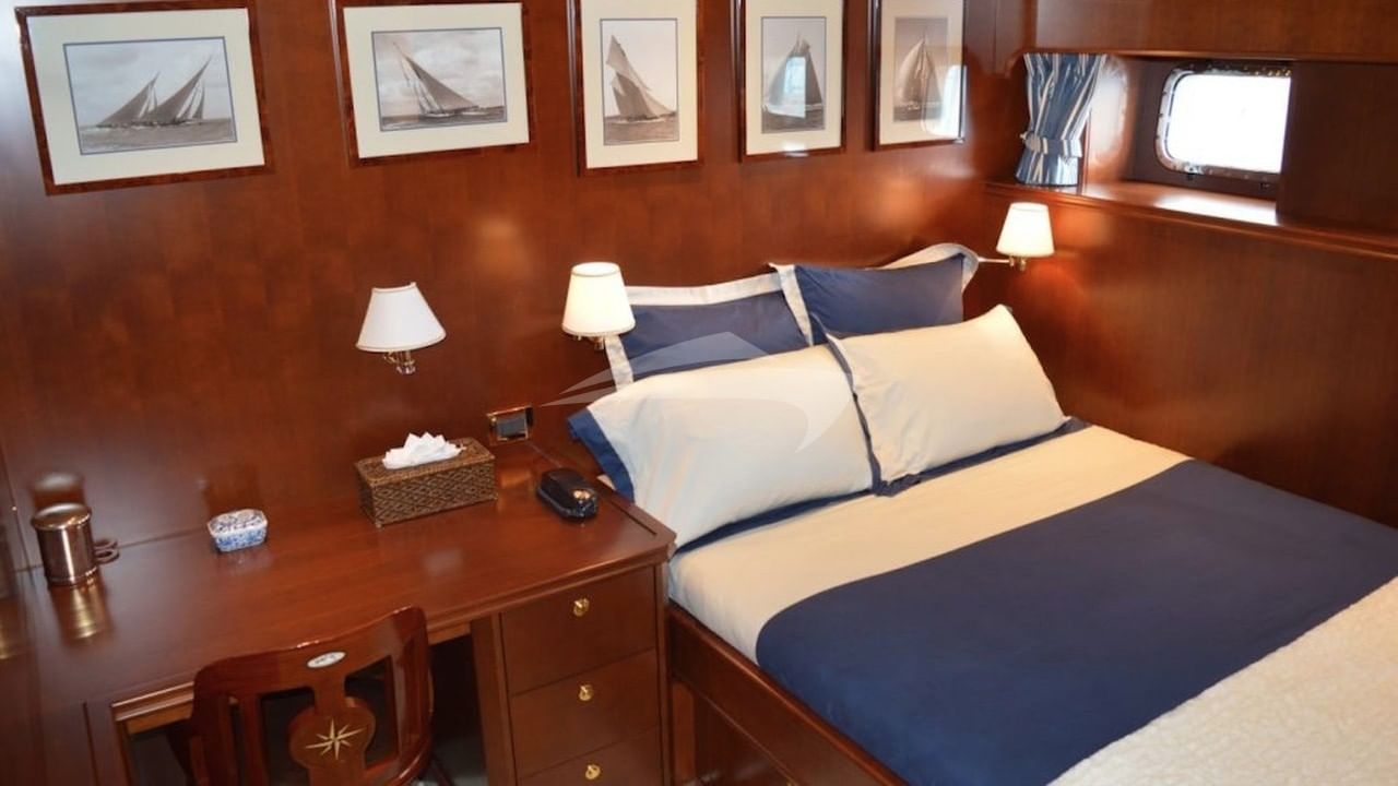 AXANTHA II can accommodate 10 guests in 5 cabins consisting of a primary suite with a king size bed and en-suite bathroom facilities located on the lower deck, a cabin with a double bed and a pullman bed and en-suite bathroom facilities, 2 cabins with a queen size bed and en-suite bathroom facilities and a cabin with a twin bed and en-suite bathroom facilities.