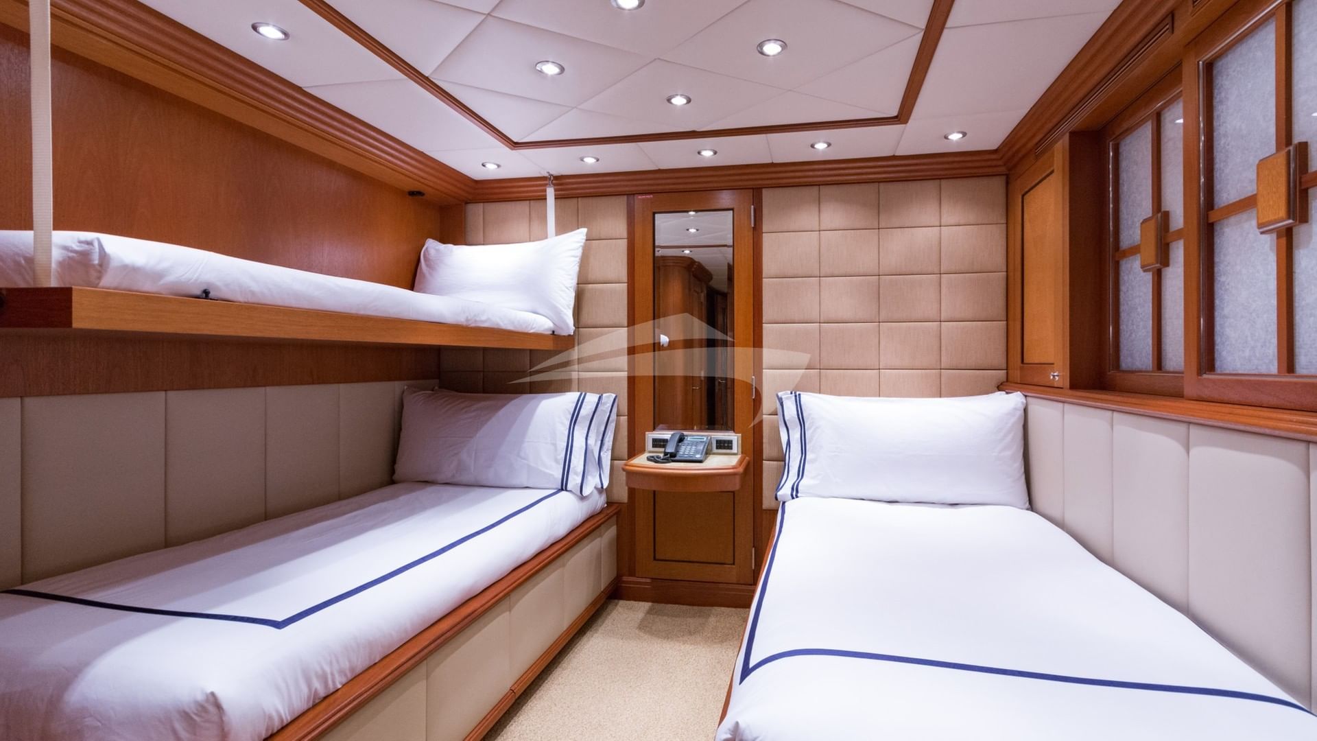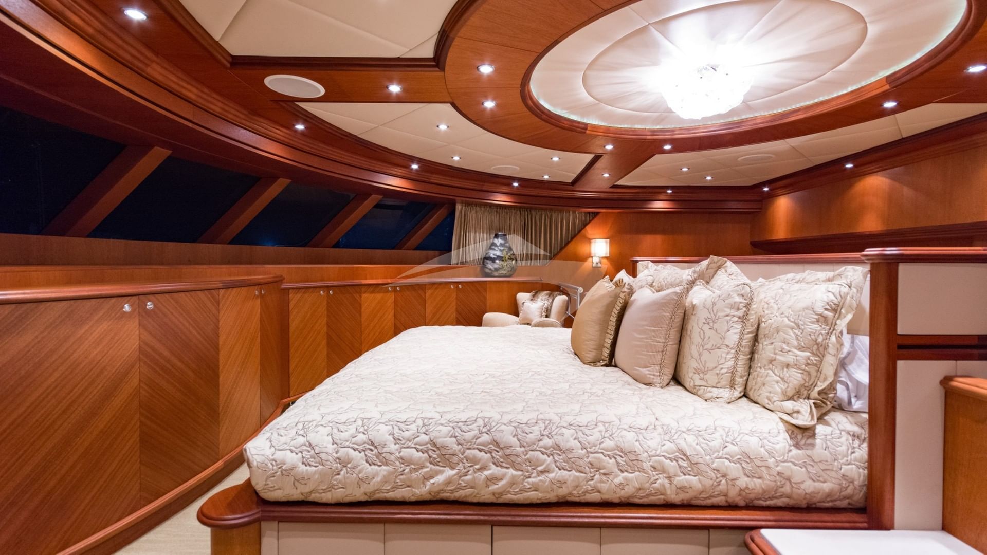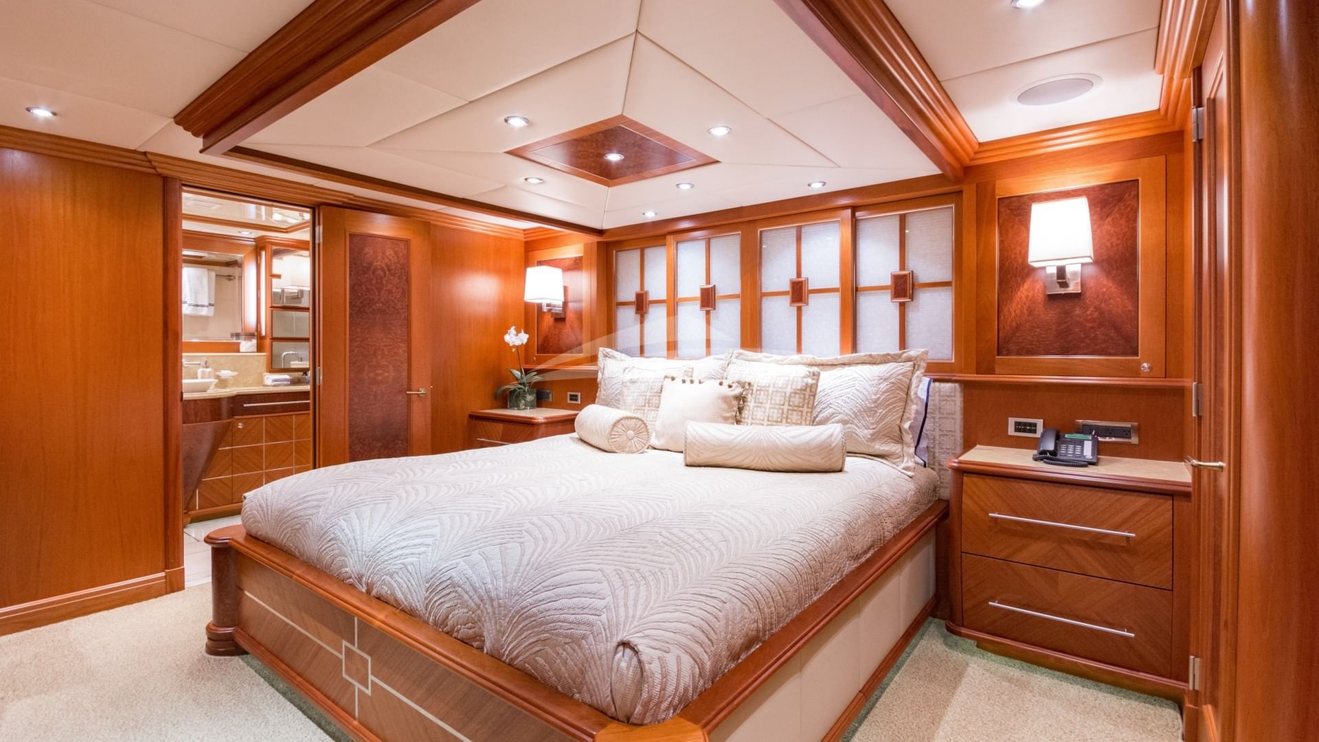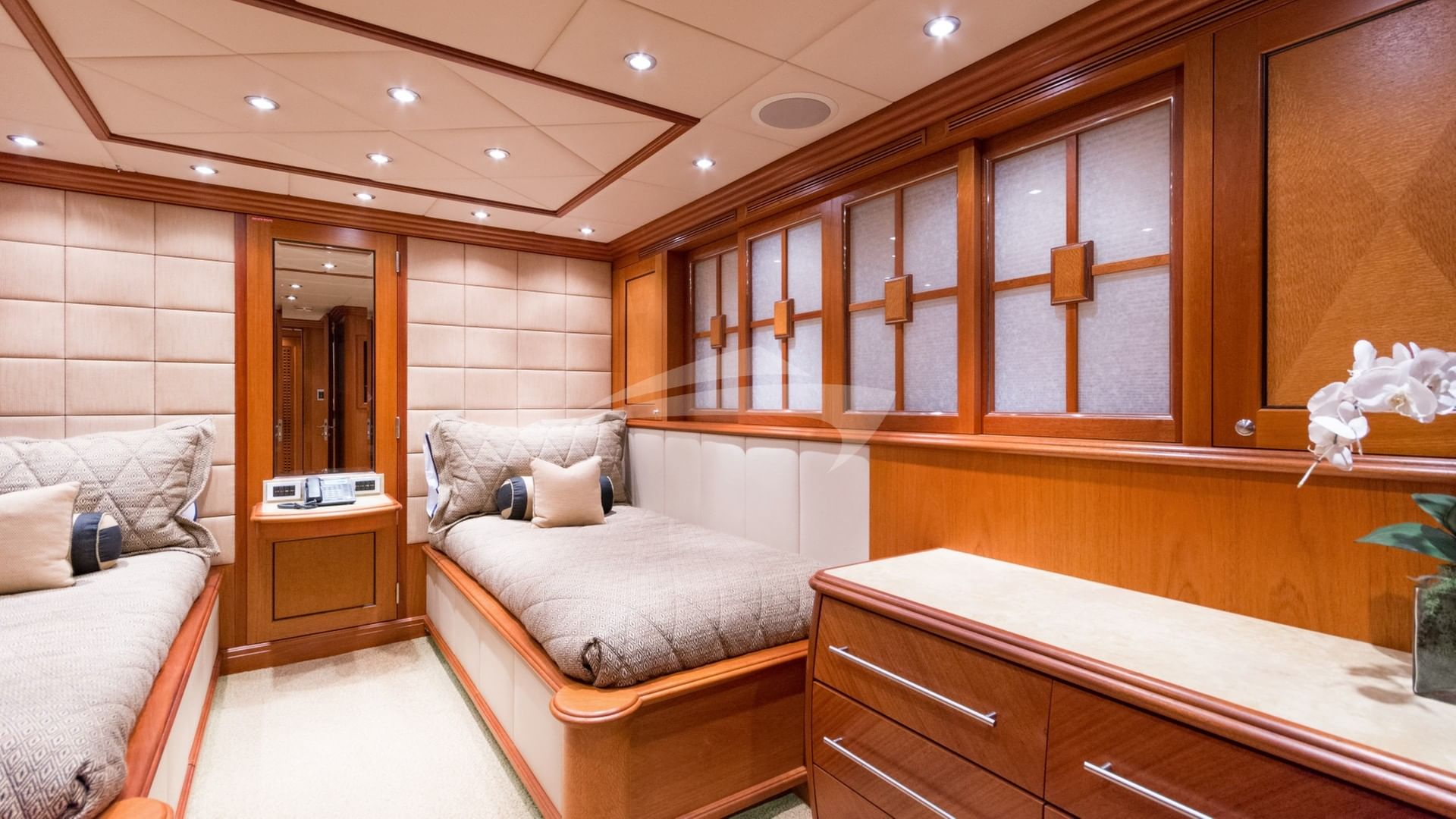MUSTANG SALLY can accommodate 12 guests in 6 cabins consisting of a primary suite with a king size bed and en-suite bathroom facilities, 3 cabins with a king size bed and en-suite bathroom facilities, a cabin with a twin bed and a pullman bed and en-suite bathroom facilities and a cabin with a queen size bed and en-suite bathroom facilities.