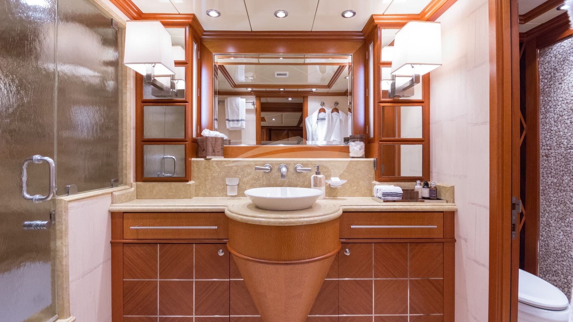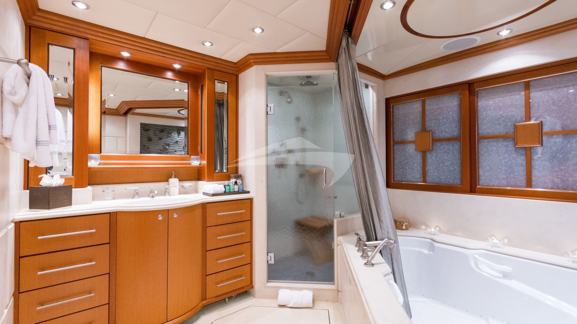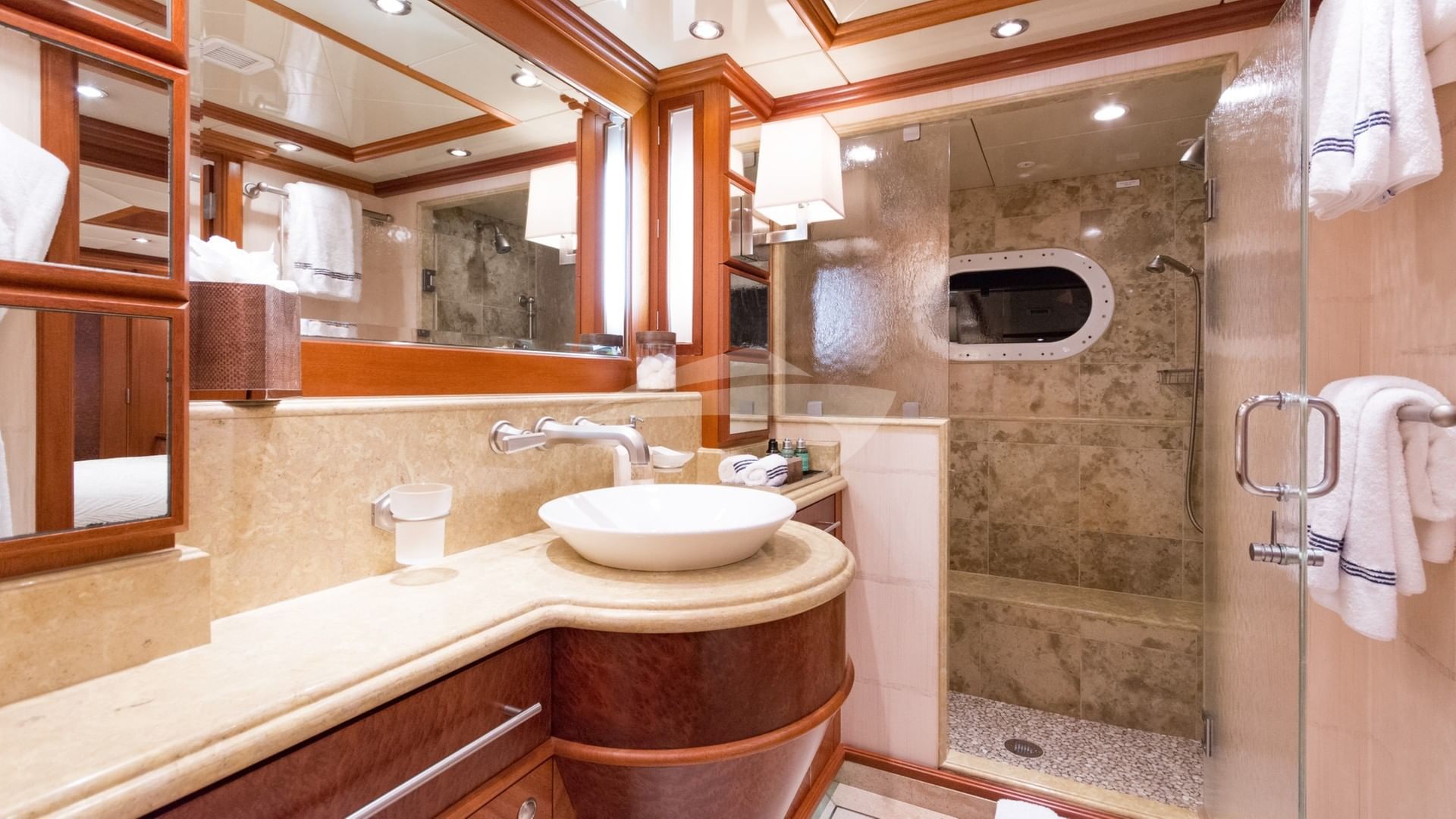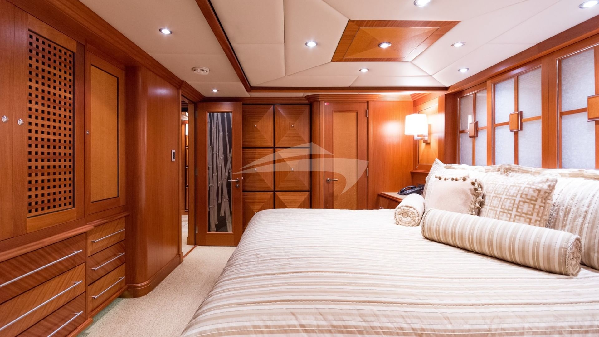 MUSTANG SALLY can accommodate 12 guests in 6 cabins consisting of a primary suite with a king size bed and en-suite bathroom facilities, 3 cabins with a king size bed and en-suite bathroom facilities, a cabin with a twin bed and a pullman bed and en-suite bathroom facilities and a cabin with a queen size bed and en-suite bathroom facilities.