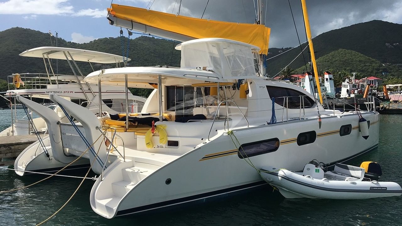 Amenities on board include Air Conditioning, BBQ, Outdoor shower, Ice maker, Indoor audio system, iPod dock, Sun pads, Sun loungers, Swim platform, TV saloon and Water maker.