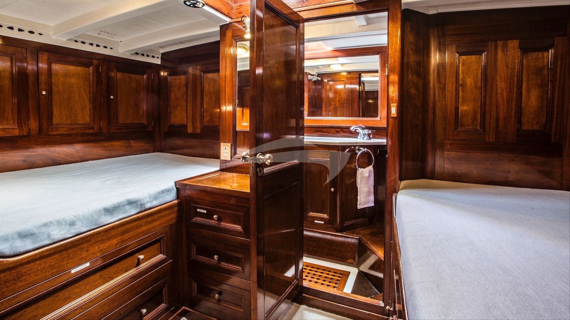 GLADORIS II can accommodate 4 guests in 3 cabins consisting of a primary suite with a double bed and en-suite bathroom facilities, a cabin with a single bed and en-suite bathroom facilities and a cabin with 2 single beds and en-suite bathroom facilities.