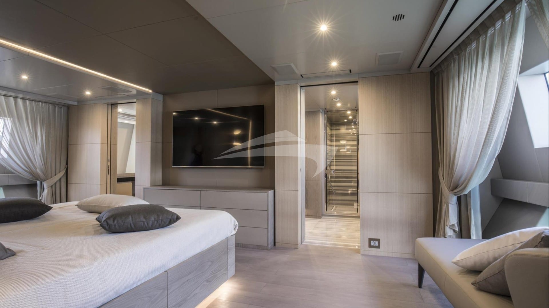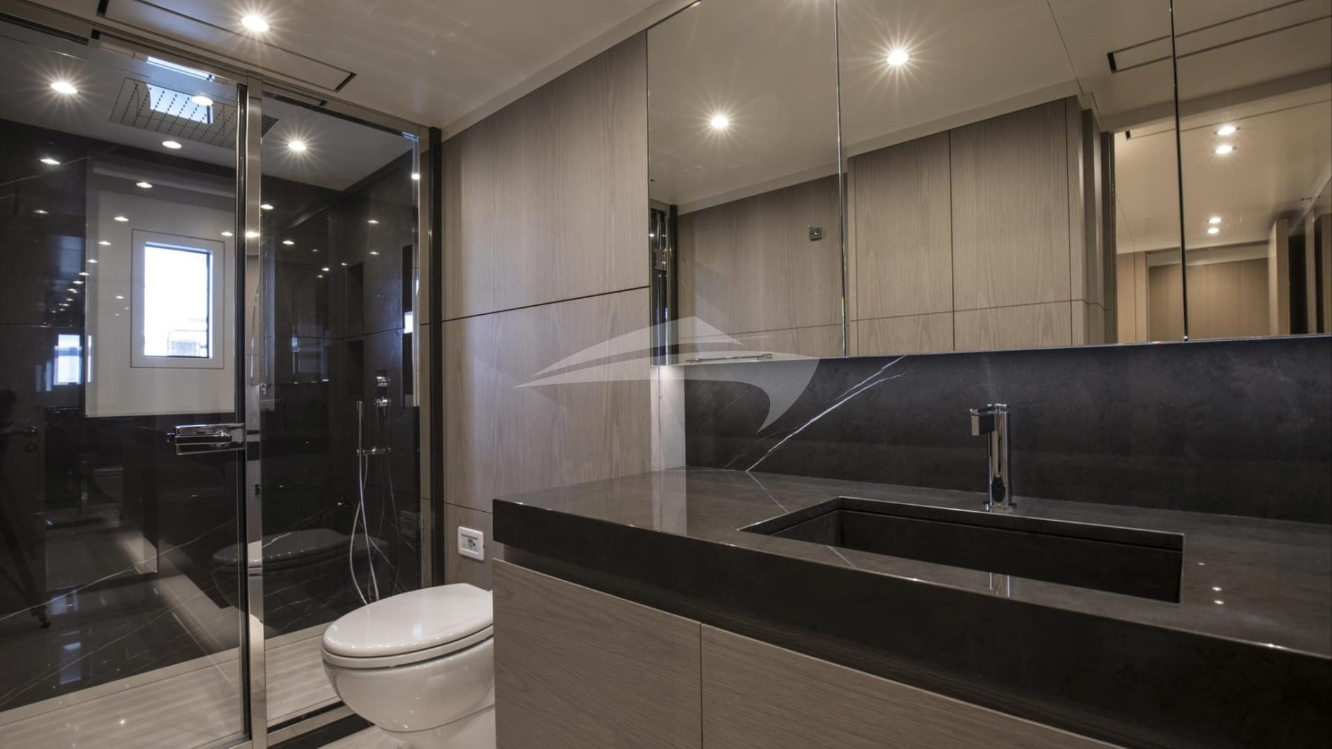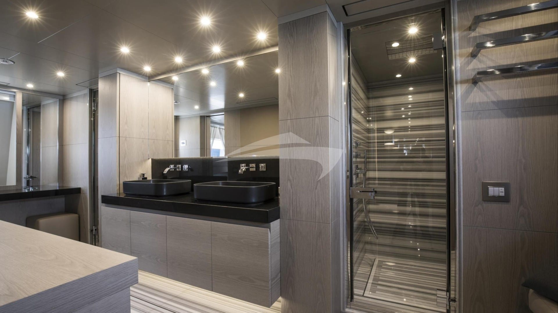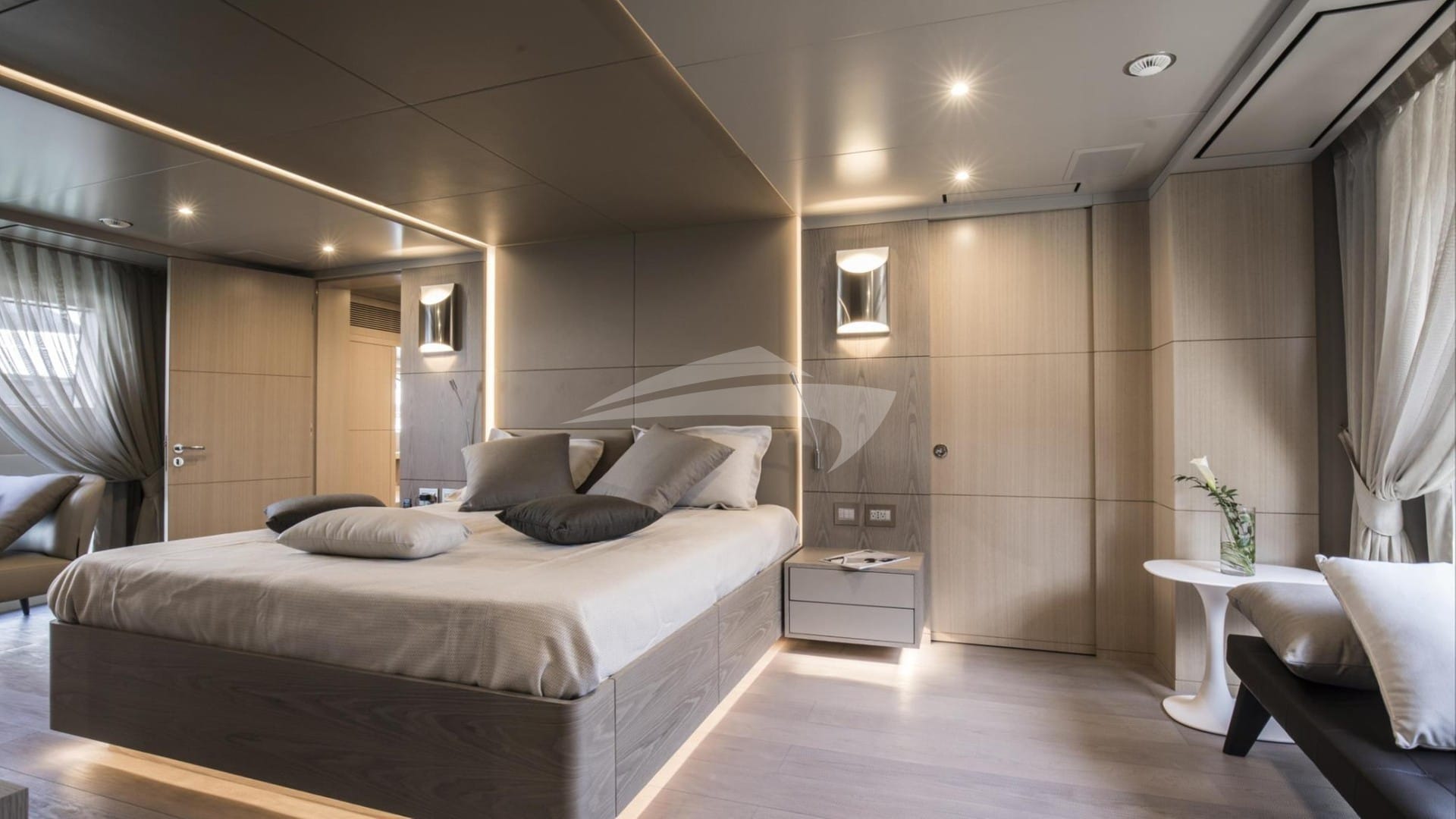 SEVEN can accommodate 12 guests in 6 cabins consisting of a primary suite with a king size bed and en-suite bathroom facilities, 2 cabins with a queen size bed and en-suite bathroom facilities, a cabin with a double bed and en-suite bathroom facilities and 2 cabins with a twin bed and en-suite bathroom facilities.