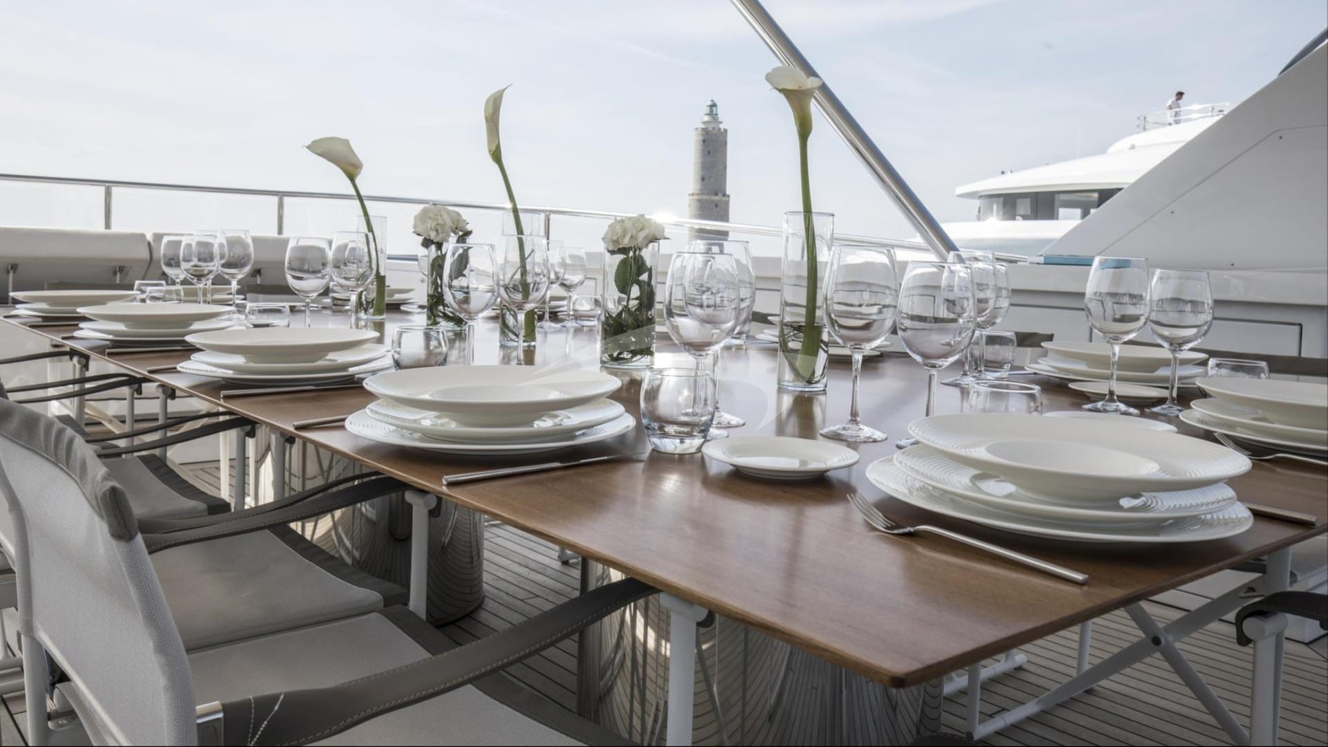 The luxury motor yacht SEVEN is a private yacht and is not available to charter.