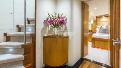 LIVING THE DREAM can accommodate 10 guests in 5 cabins consisting of a primary suite with a king size bed and en-suite bathroom facilities located on the aft deck, a cabin with a twin bed and en-suite bathroom facilities, a cabin with a double bed and en-suite bathroom facilities, a VIP suite with a queen size bed and en-suite bathroom facilities and a cabin with a queen size bed and en-suite bathroom facilities.