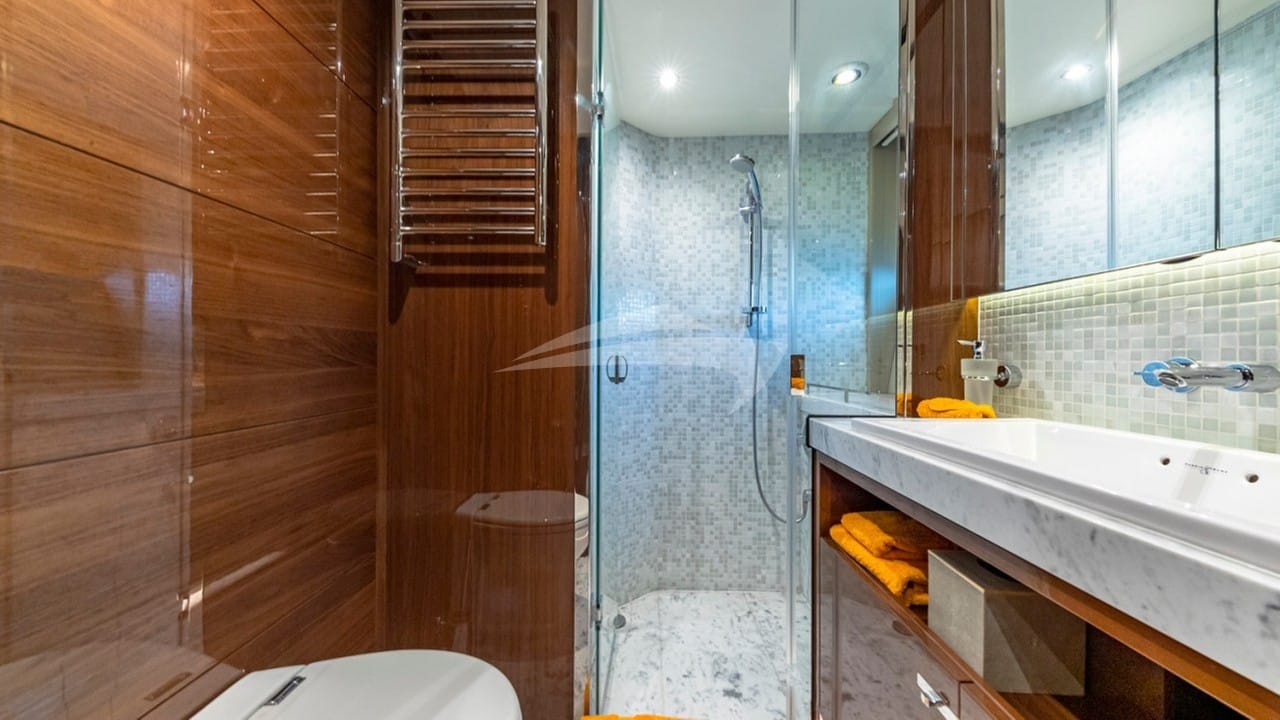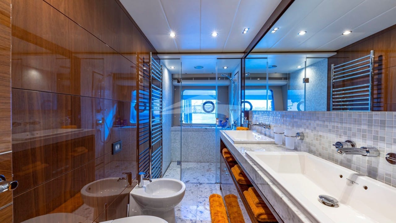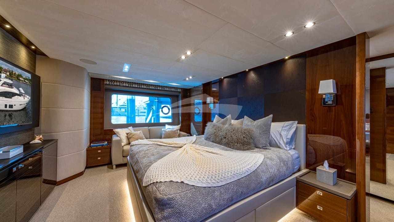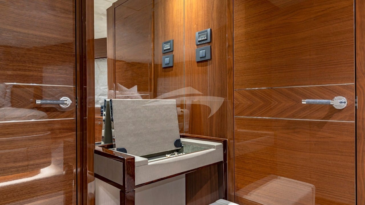 PRONTO tiene capacidad para 9 personas en 4 cabinas que consisten en una suite principal con cama doble y baño privado, una suite VIP con cama doble y baño privado, cabina con cama doble y baño privado y cabina con 2 camas individuales y 1 cama pullman y baño privado. instalaciones de baño.