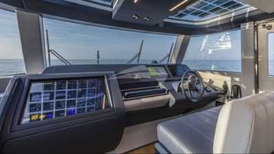 El HAZE de 85 pies/25,9 m se ha construido con un casco de grp y funciona con una velocidad de crucero de 13 nudos y una velocidad máxima de 21 nudos.