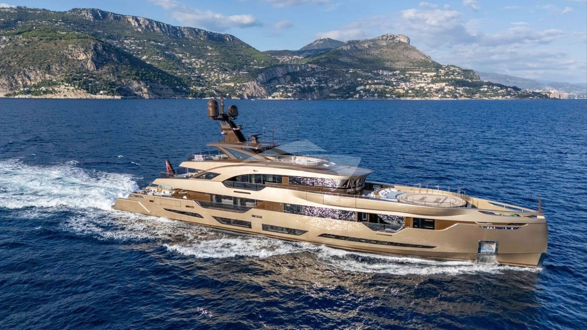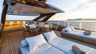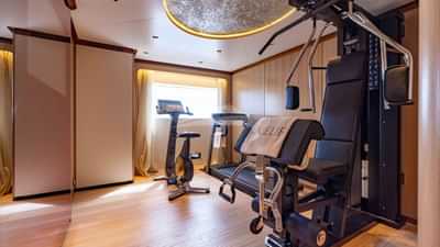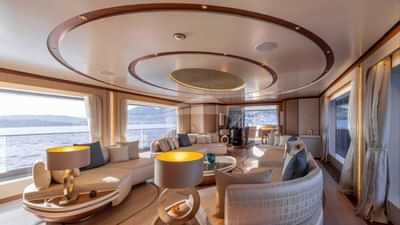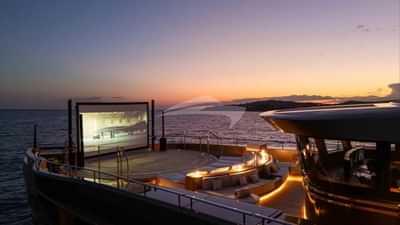 Las comodidades a bordo para los huéspedes del chárter incluyen aire acondicionado, sala de cine, gimnasio, helipuerto, jacuzzi en la cubierta, sauna, estabilizadores, piscina y Wi-Fi.