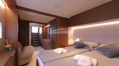 MASTERMIND ha sido diseñado para alojar cómodamente hasta 8 huéspedes chárter en 4 suites.