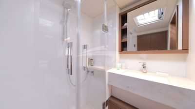 MASTERMIND puede acomodarse 8 Invitadas durmiendo a bordo en 4 cabañas.