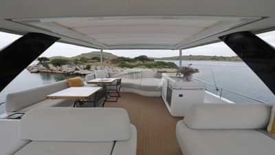 Las comodidades a bordo para los huéspedes del chárter incluyen aire acondicionado, barbacoa, gimnasio, sistema de audio interior, sala de TV y Wi-Fi.