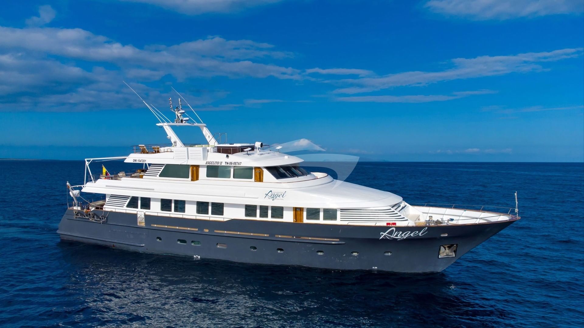 El GALAPAGOS ANGEL, de 115 pies/35,1 m, se ha construido con un casco de acero y está propulsado por 2 MTU Diesel V a 835 CV cada uno, con una velocidad de crucero de 11 nudos y una velocidad máxima de 11 nudos.
