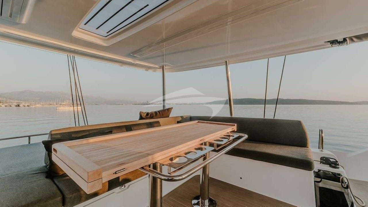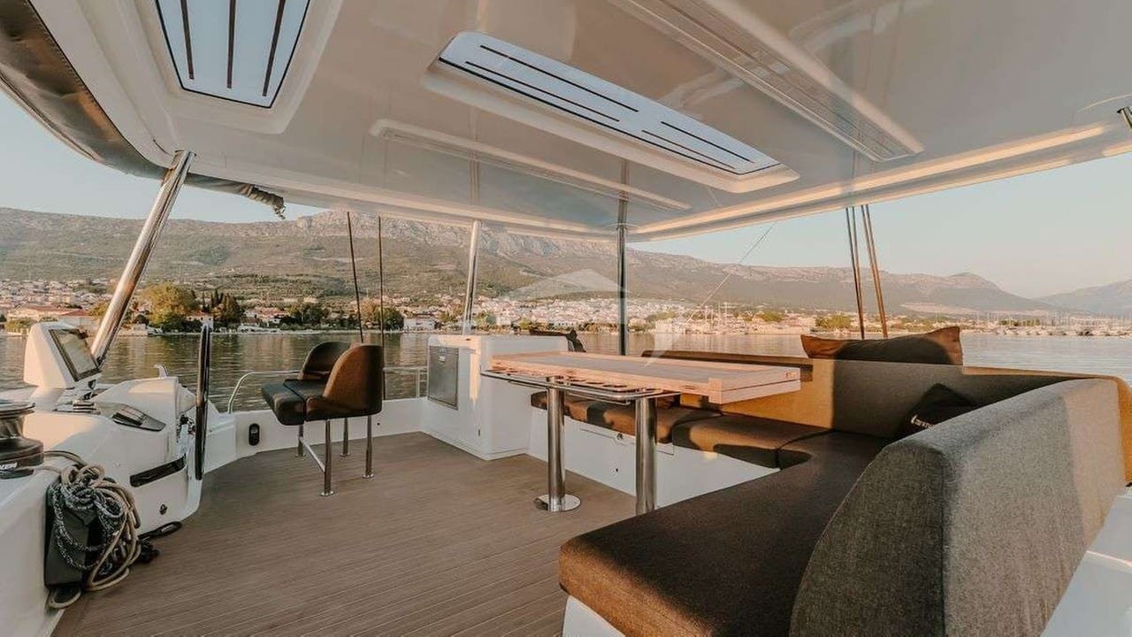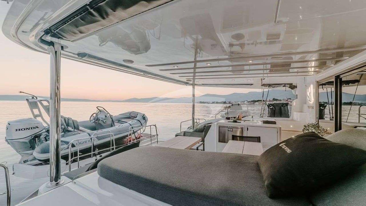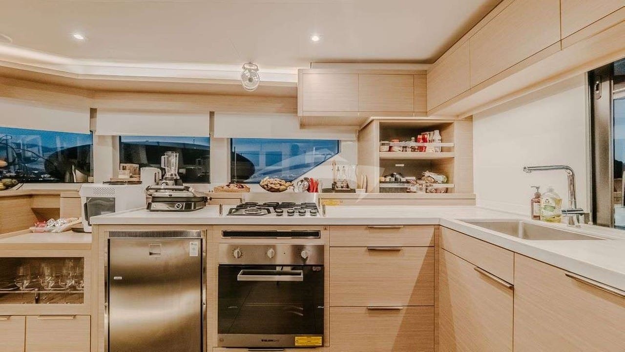 Las comodidades a bordo para los huéspedes del chárter incluyen aire acondicionado, barbacoa, sistema de audio interior, sala de TV y Wi-Fi.