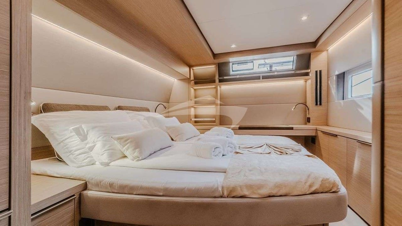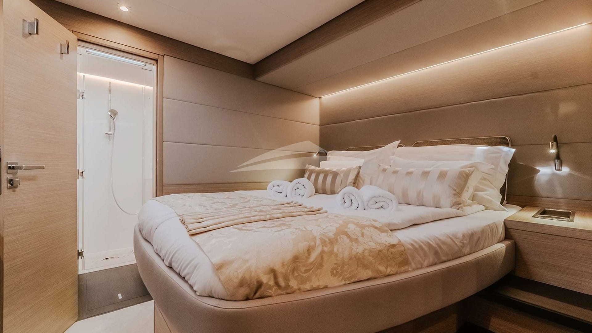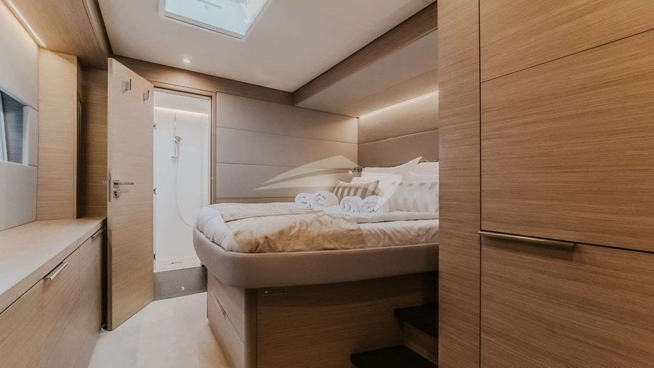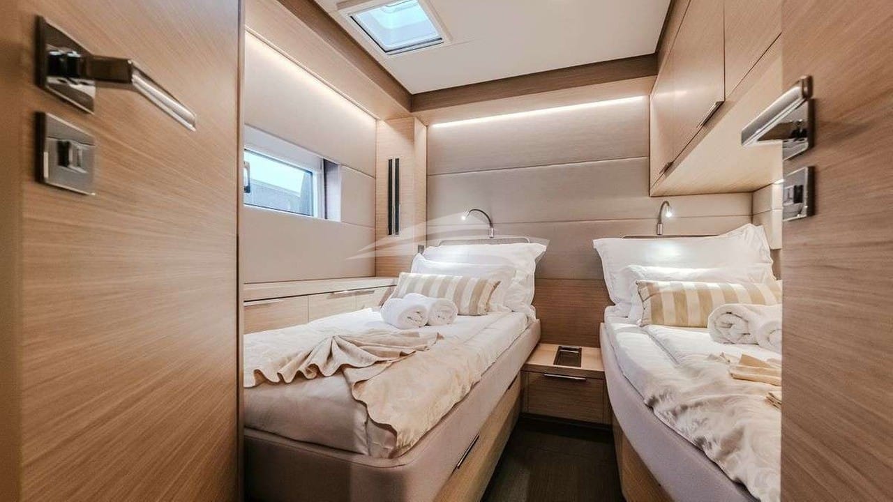 Las cabinas de invitados incluyen una suite principal con cama doble y baño privado, 3 camarotes con cama doble y baño privado y cabina con 2 camas individuales y baño privado.