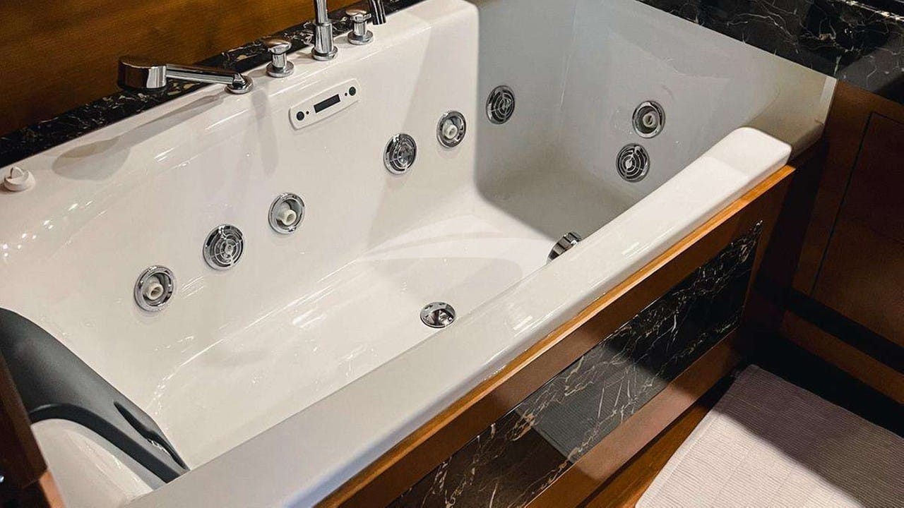 Las comodidades a bordo para los huéspedes del chárter incluyen aire acondicionado y jacuzzi en la cubierta.