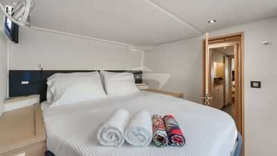 Las cabinas de invitados incluyen una suite principal con cama queen size y baño privado y 2 camarotes con cama queen size y baño privado.