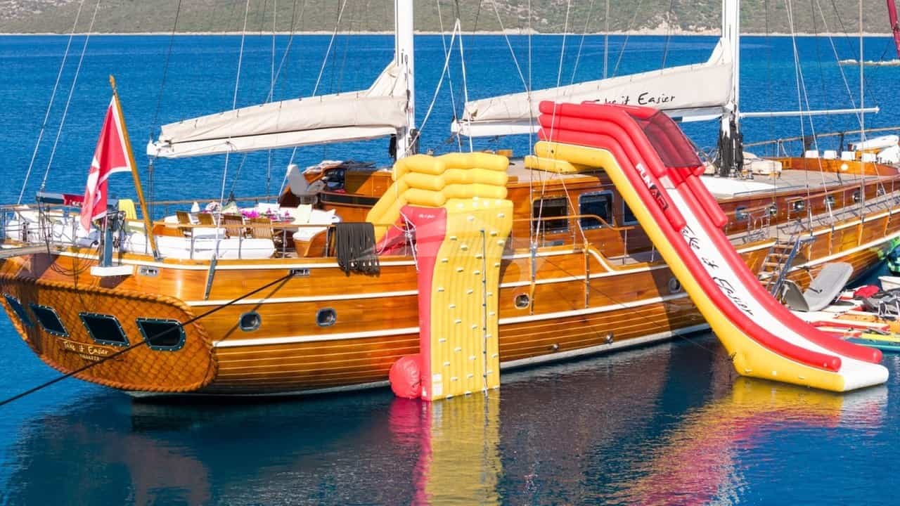 El lujoso velero TAKE IT EASIER, anteriormente llamado QUEEN OF KARIA II, fue construido por Custom y entregado a su propietario en 2007, y luego se sometió a una remodelación en 2019.