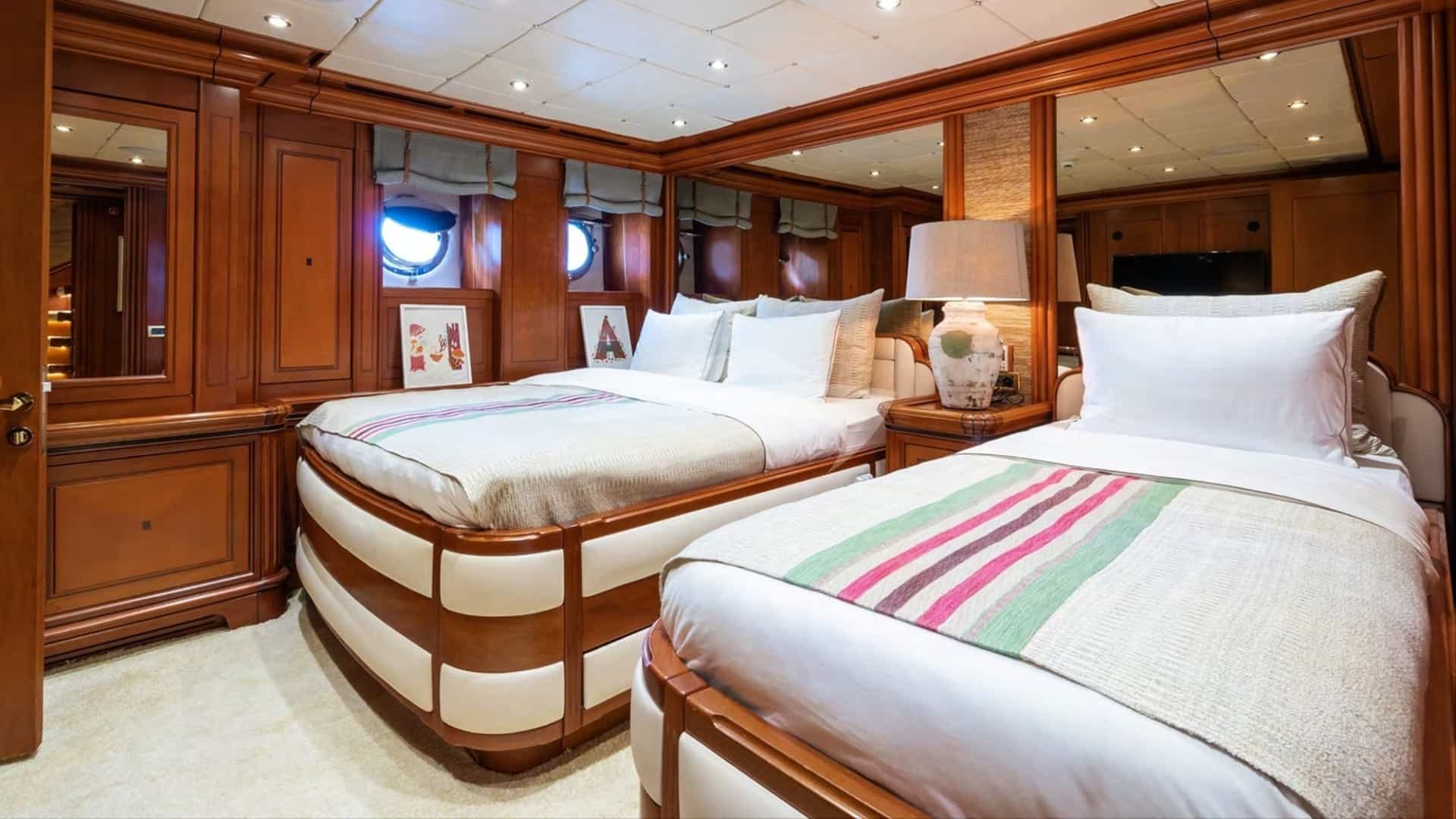Las cabinas de huéspedes comprenden una suite principal con cama king size y baño privado, una suite VIP con cama king size y baño privado, 3 cabinas con cama doble y baño privado y 2 cabinas con baño privado.