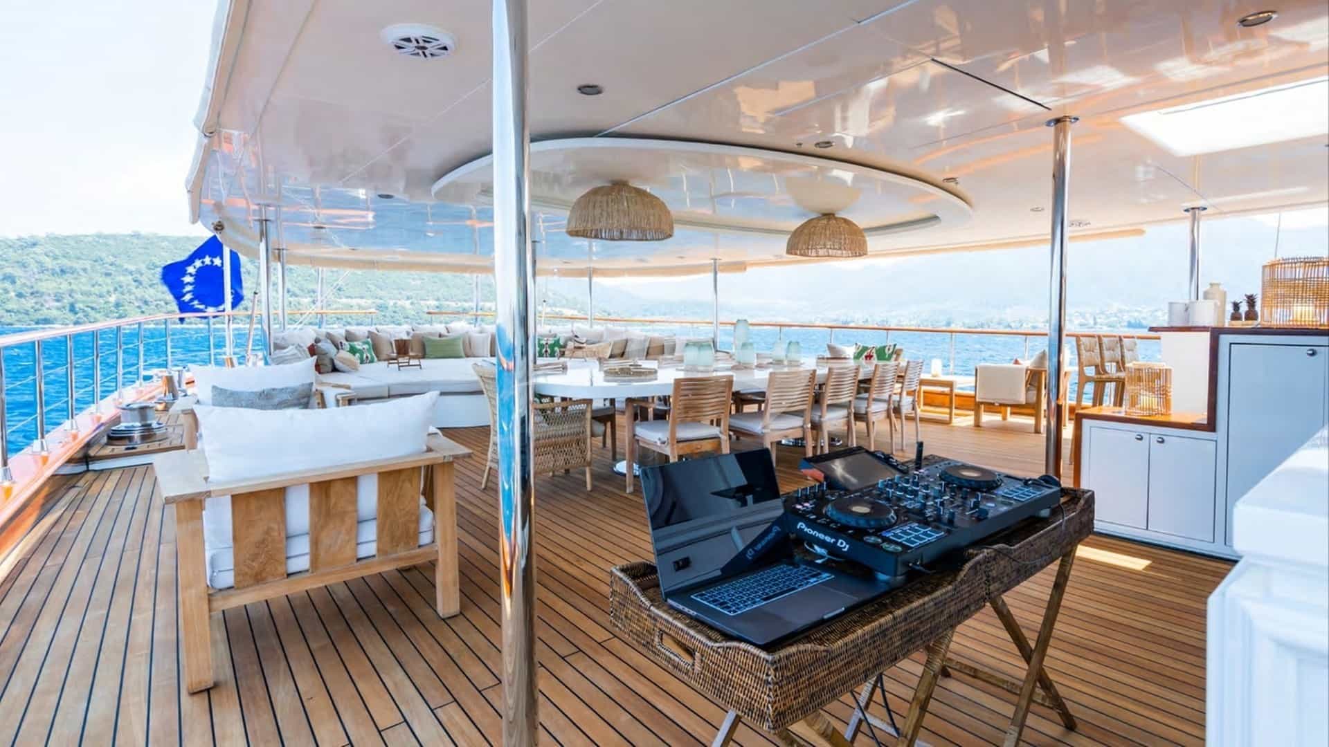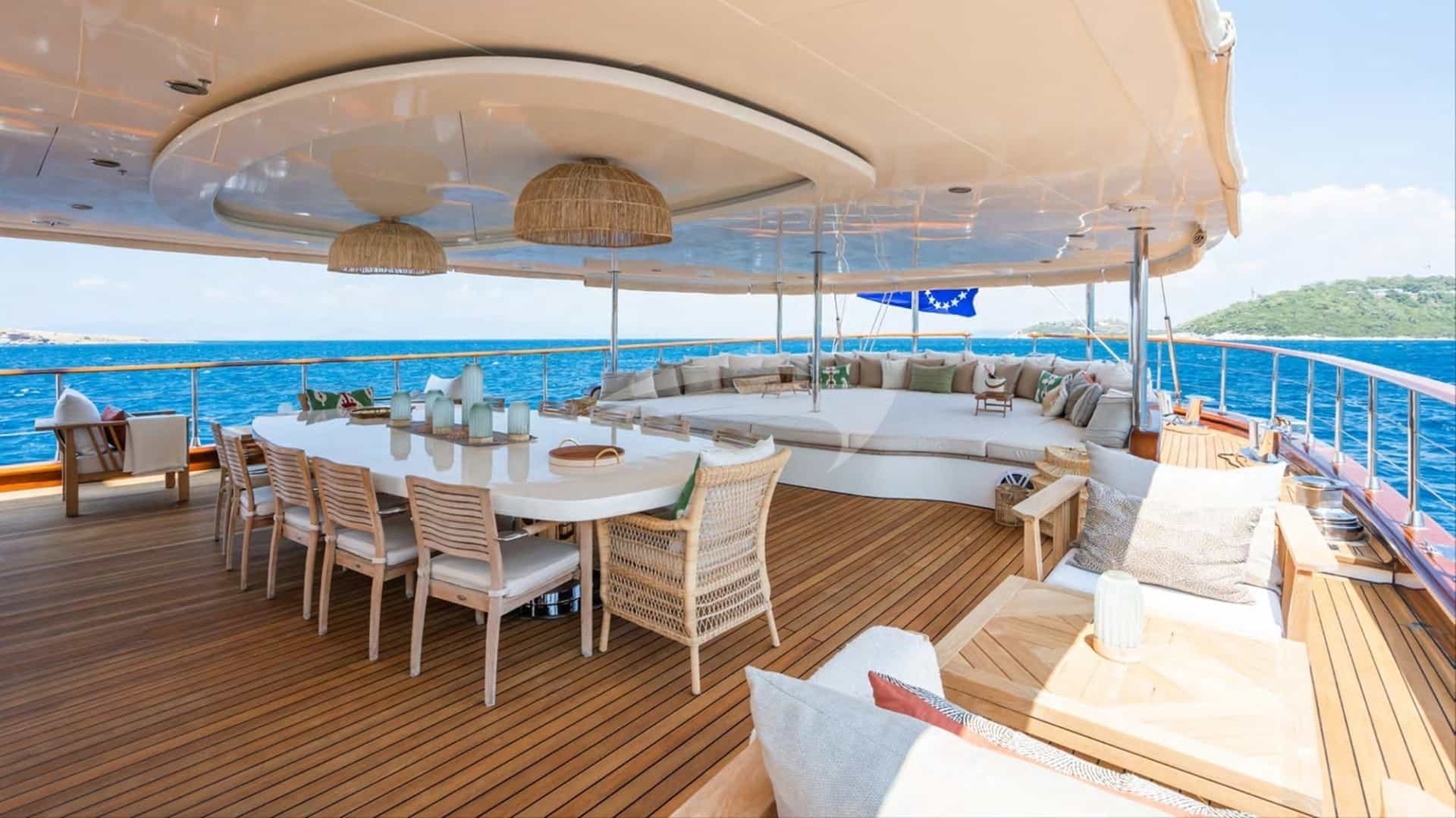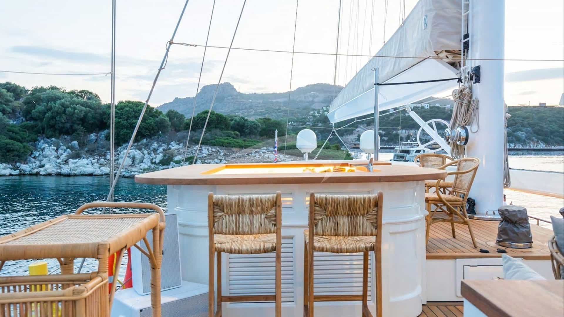 Las comodidades a bordo para los huéspedes del chárter incluyen aire acondicionado, jacuzzi en la cubierta y Wi-Fi.