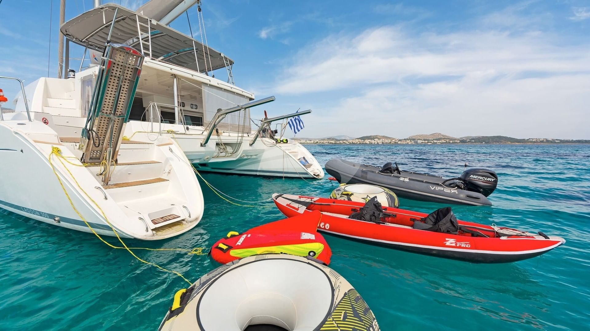Las comodidades a bordo incluyen aire acondicionado, sala de cine, equipo de pesca ligera, sala de TV y conexión inalámbrica a internet.