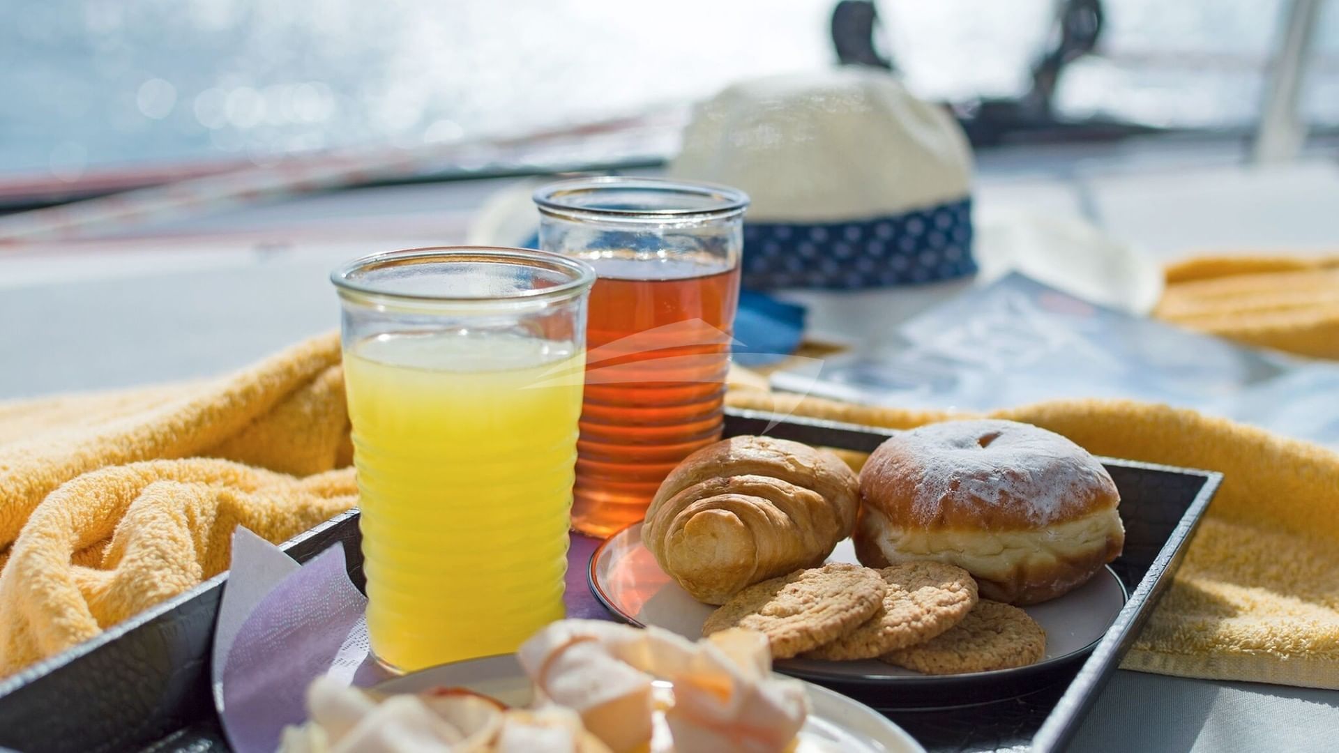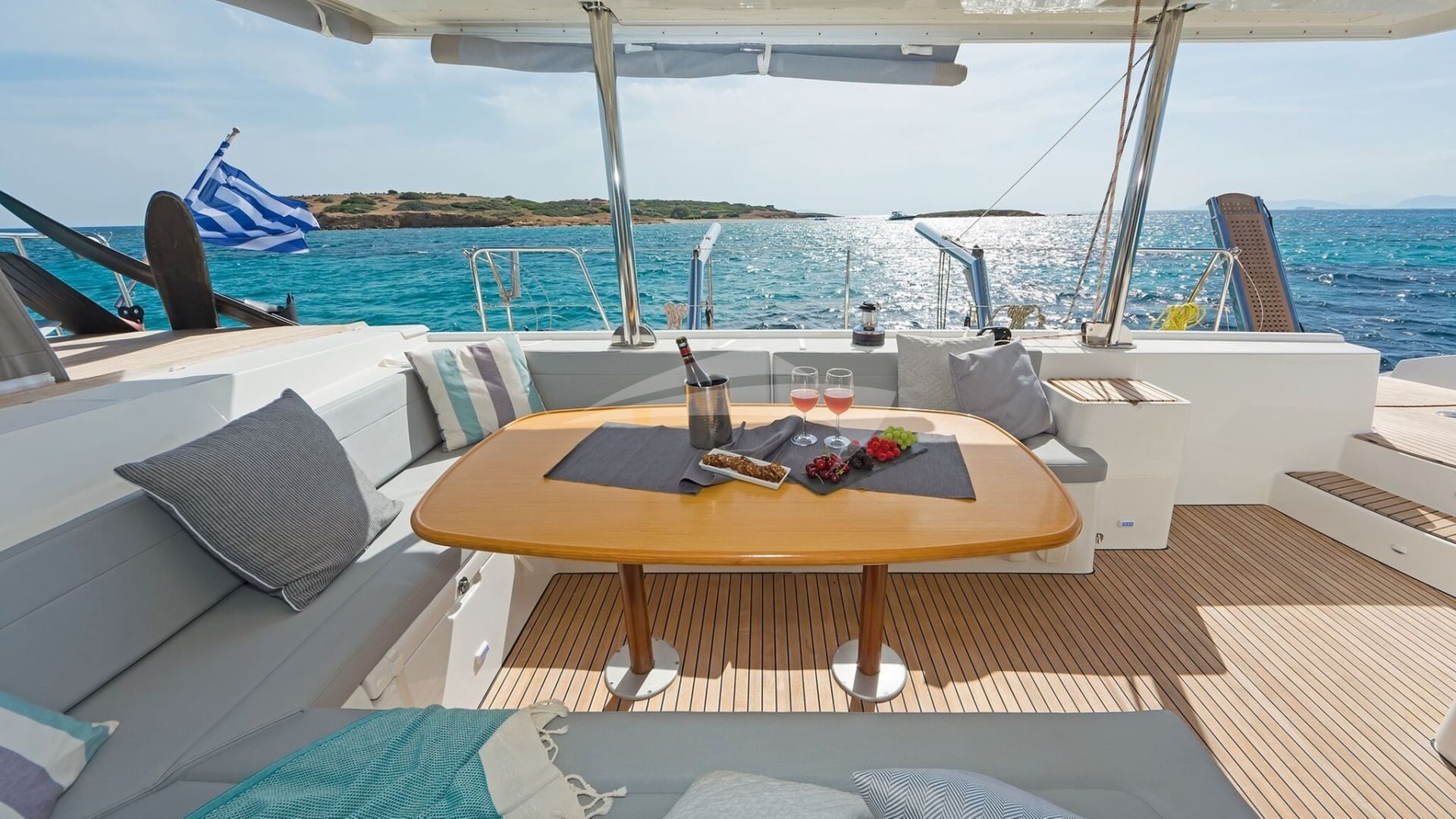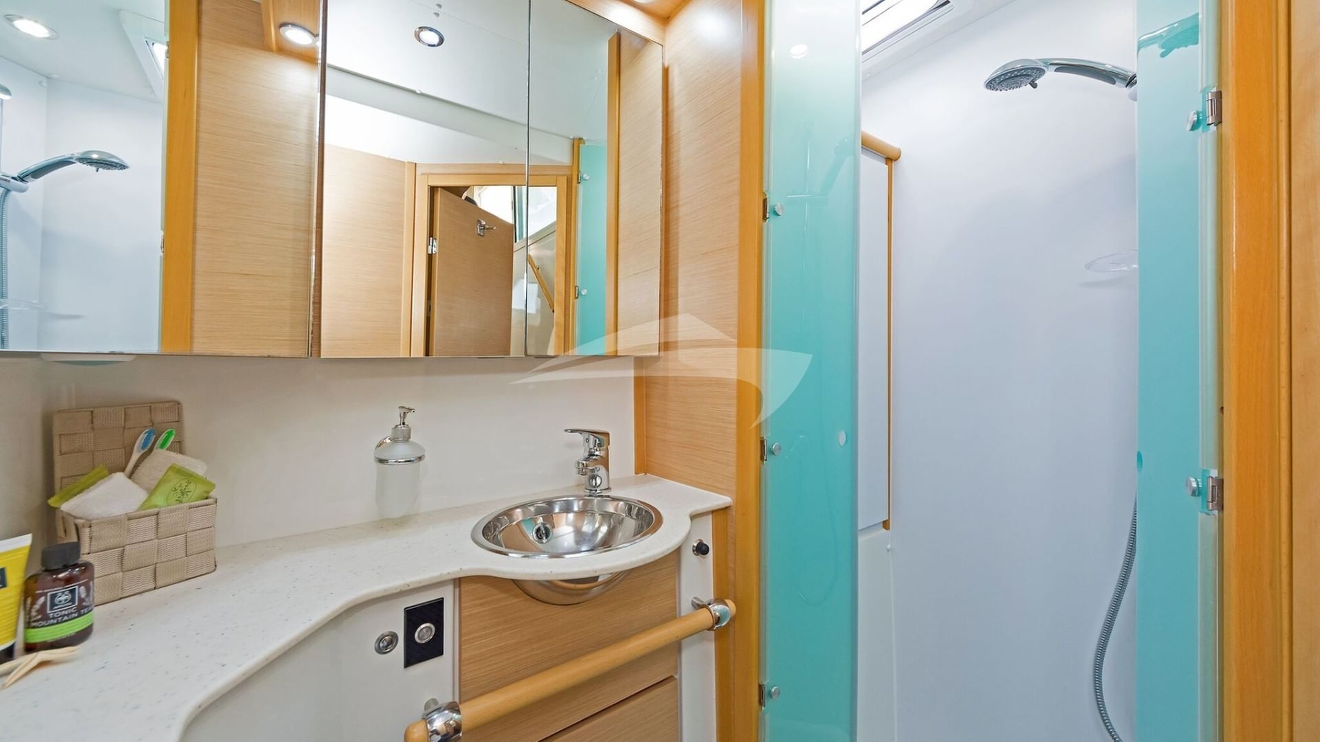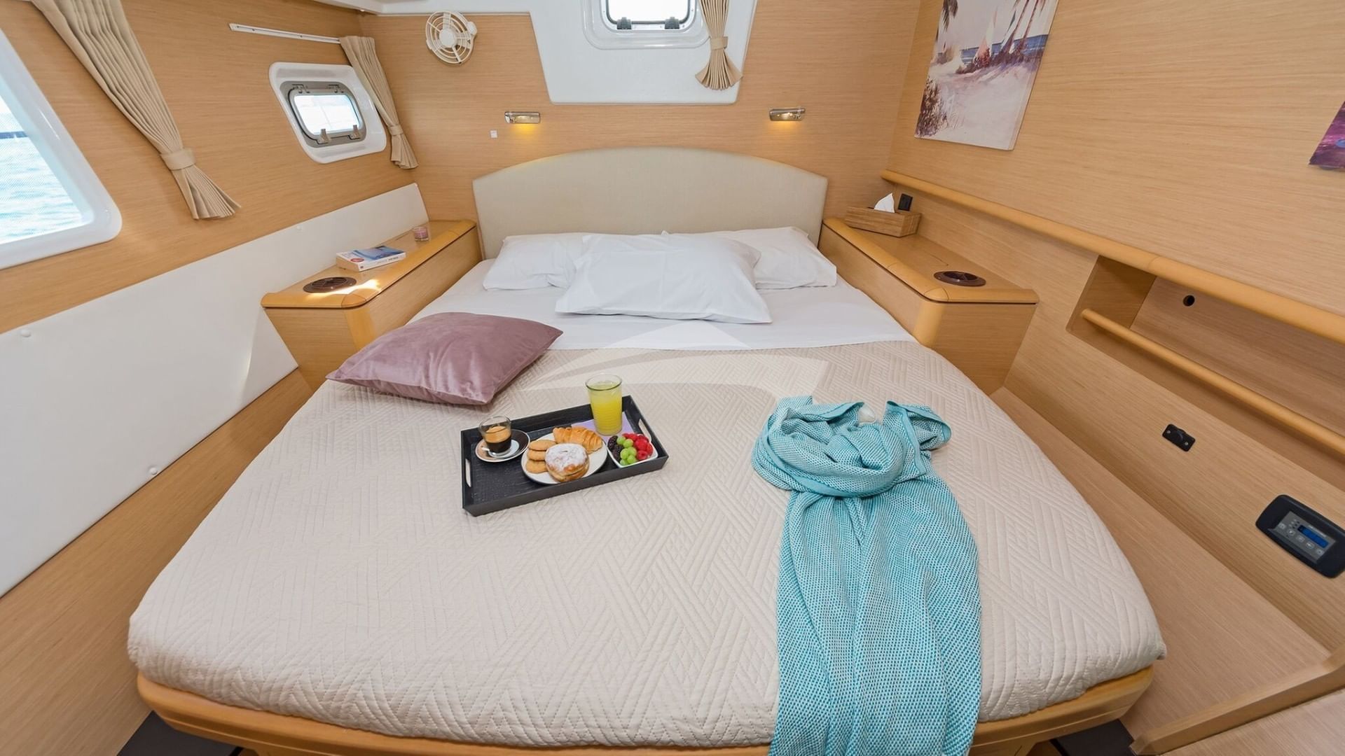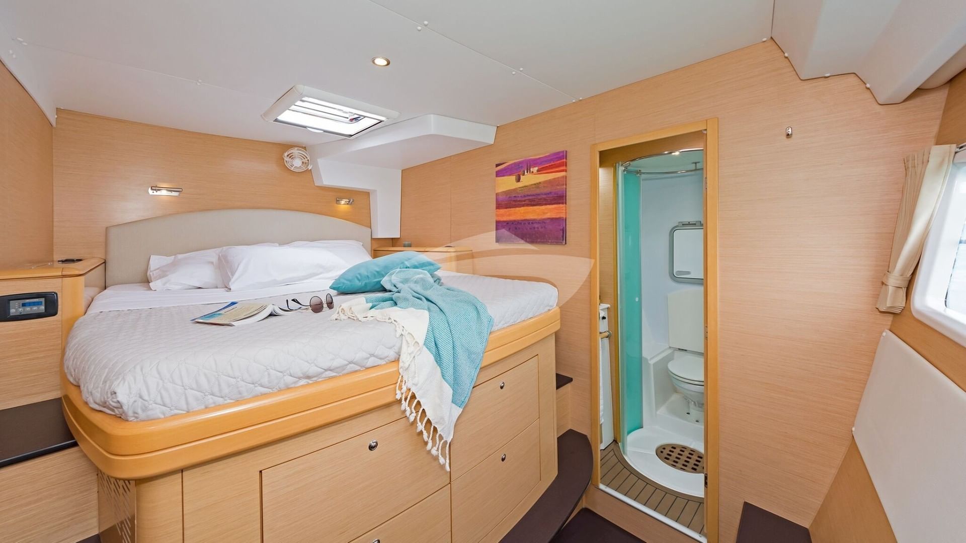 MYSTIQUE tiene capacidad para 10 personas en 5 cabinas que consisten en una suite principal con cama queen size y baño privado, 3 camarotes con cama queen size y baño privado y cabina con 2 camas individuales y baño privado.