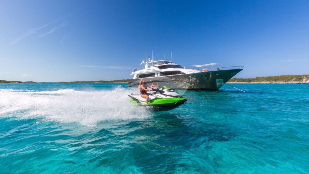Las comodidades a bordo para los huéspedes del chárter incluyen aire acondicionado, equipo de ejercicio, equipo de pesca ligera, gimnasio, jacuzzi en la cubierta, estabilizadores y Wi-Fi.