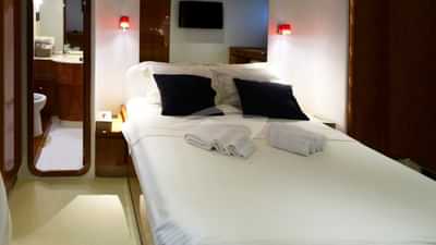KIALOA tiene capacidad para 8 personas en 4 cabinas que consisten en una suite principal con cama doble y baño privado, 2 camarotes con 1 cama doble y baño privado y cabina con cama doble y baño privado.