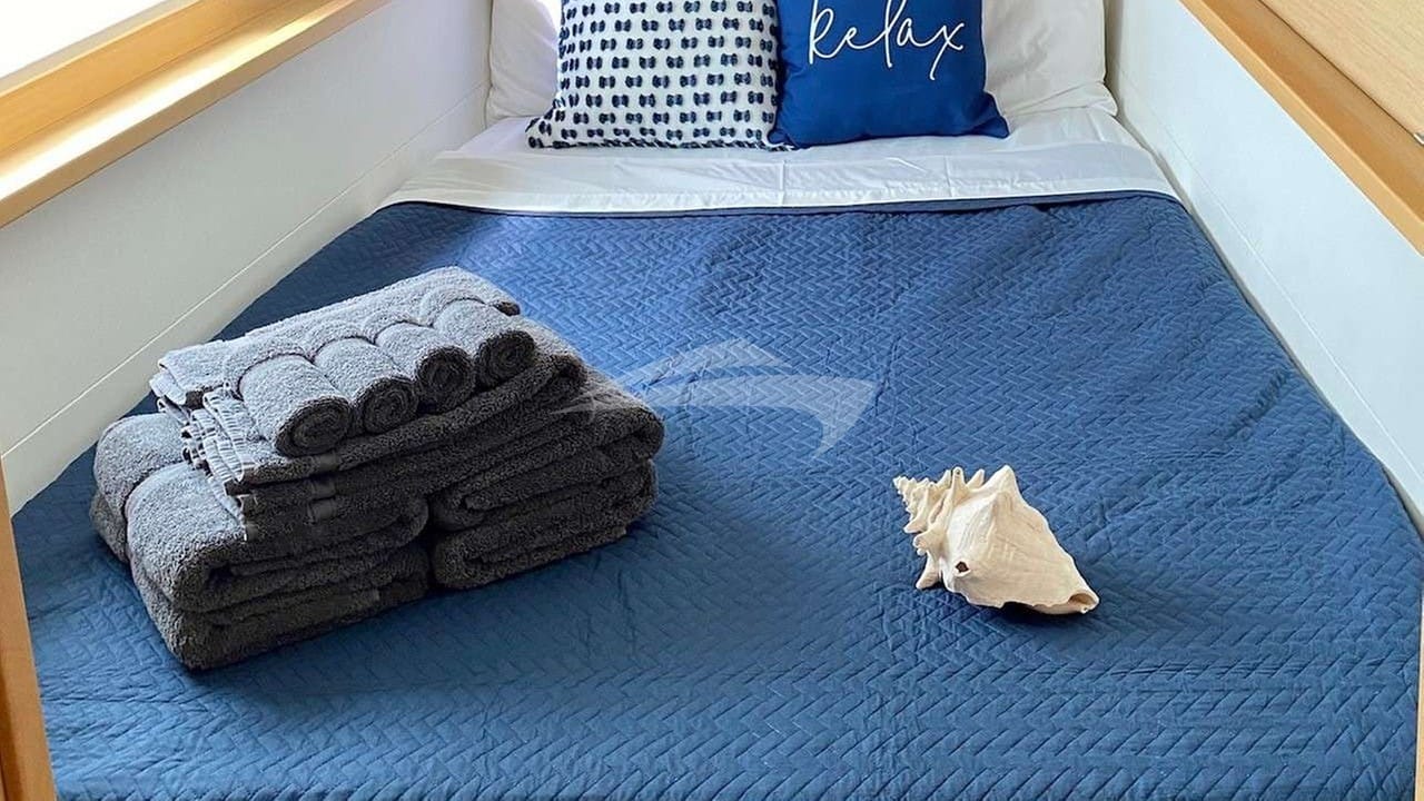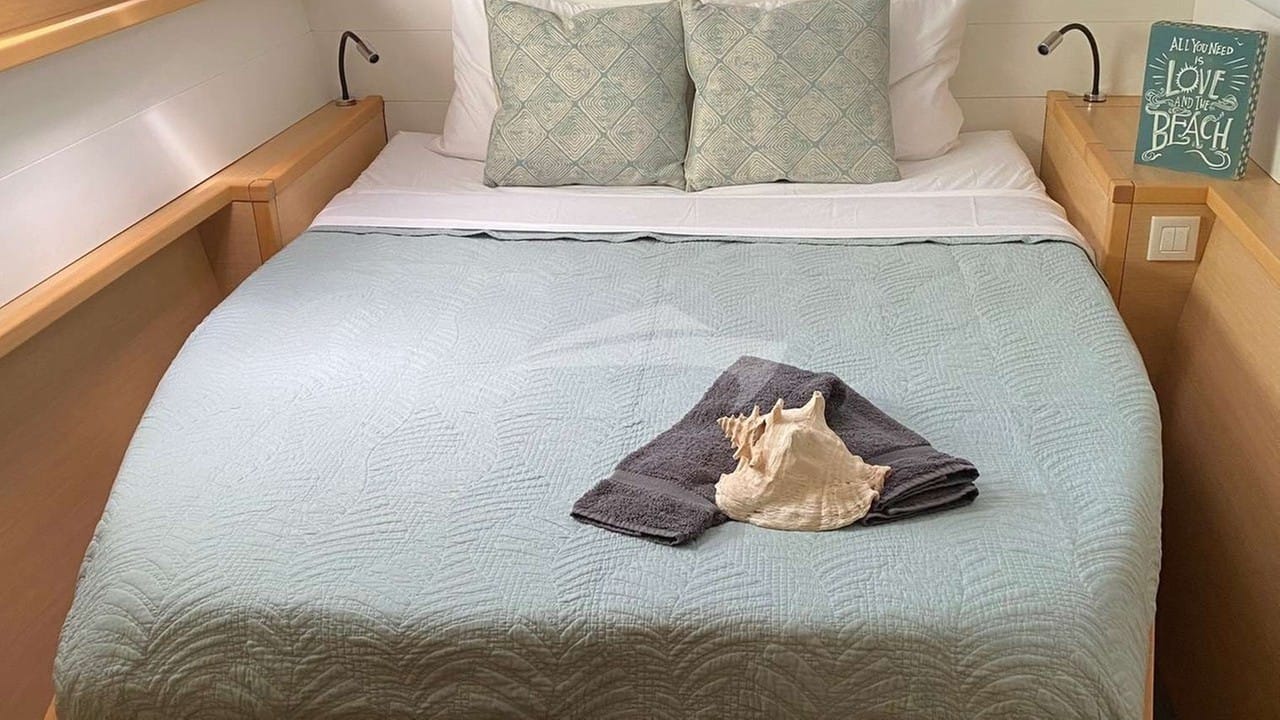 CHAOS INTERRUPTED peut accueillir 6 personnes dans 3 cabines comprenant une suite principale avec un lit queen-size et une salle de bains privative et 2 cabines avec un lit queen-size et une salle de bains privative.