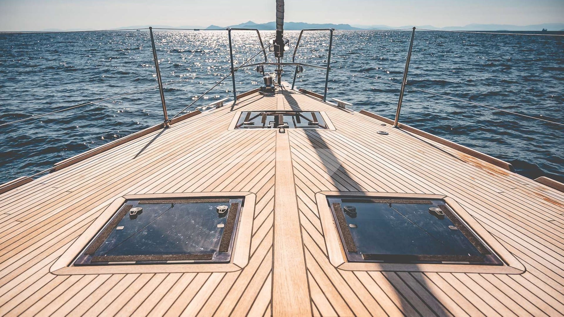 Les équipements à bord incluent la climatisation, une douche extérieure, un système audio intérieur et une plateforme de bain.