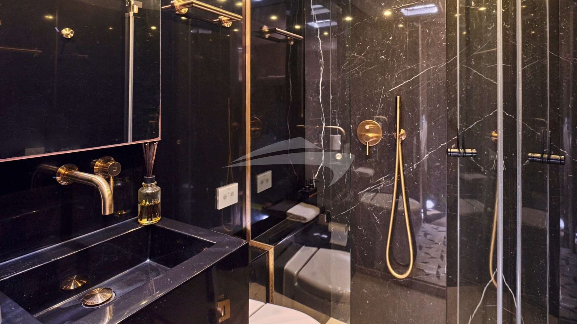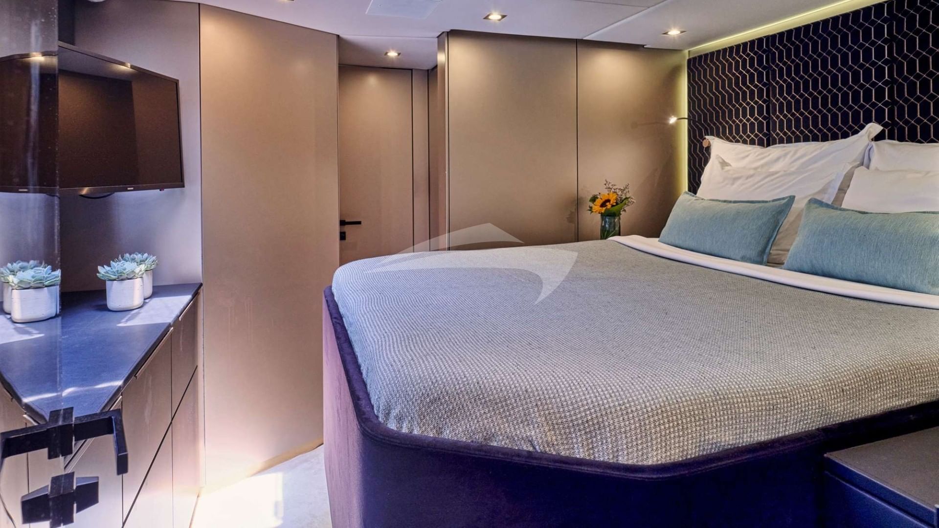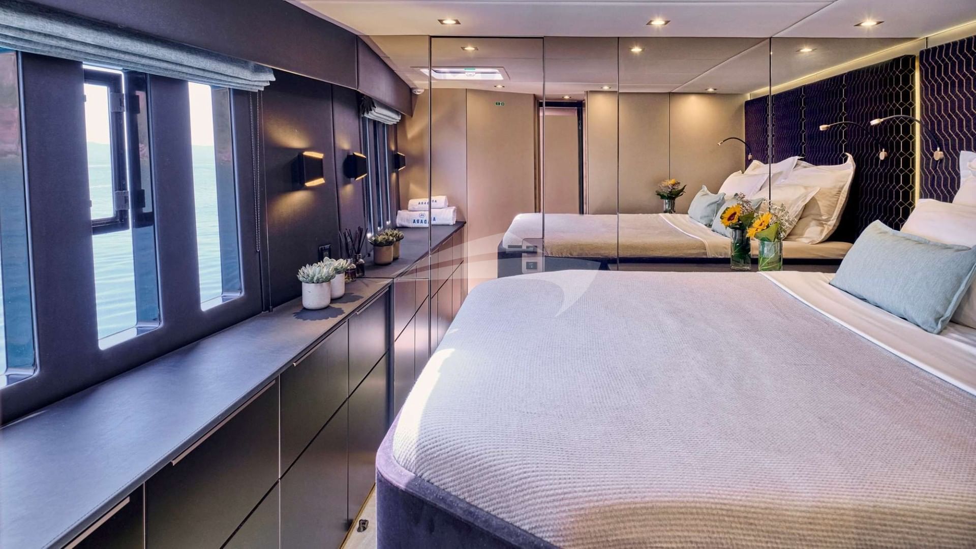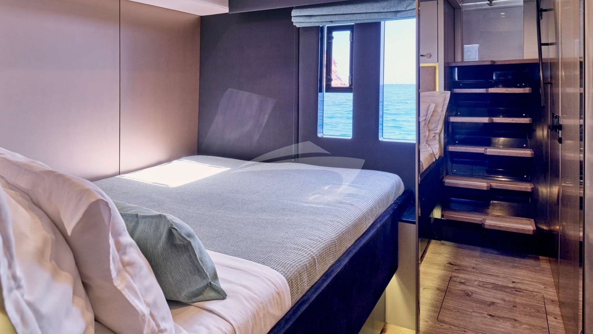 Les cabines d'hôtes comprennent une suite principale avec un lit double et un lit pullman et une salle de bains privative, ainsi que 3 cabines avec un lit double et une salle de bains privative.