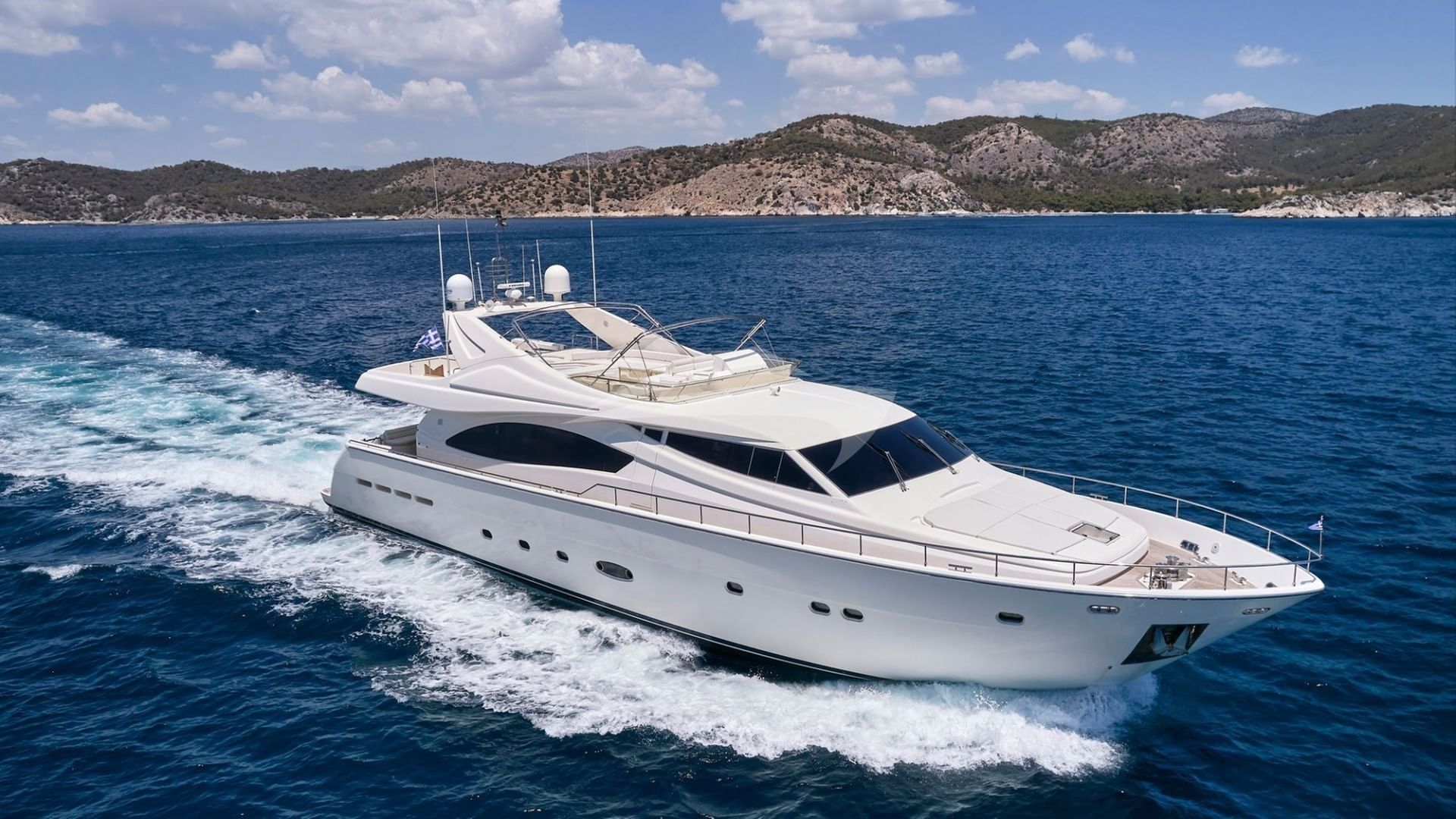 Le yacht à moteur de luxe ESTIA YI a été construit par Ferretti et livré à son propriétaire en 2004, elle subit plus tard un refit en 2021.