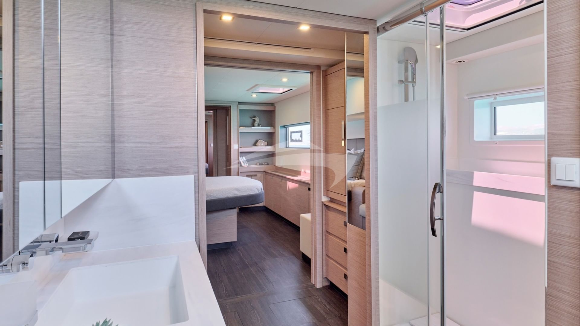 Les cabines d'hôtes comprennent 4 cabines avec un lit double et une suite principale avec un lit king-size.