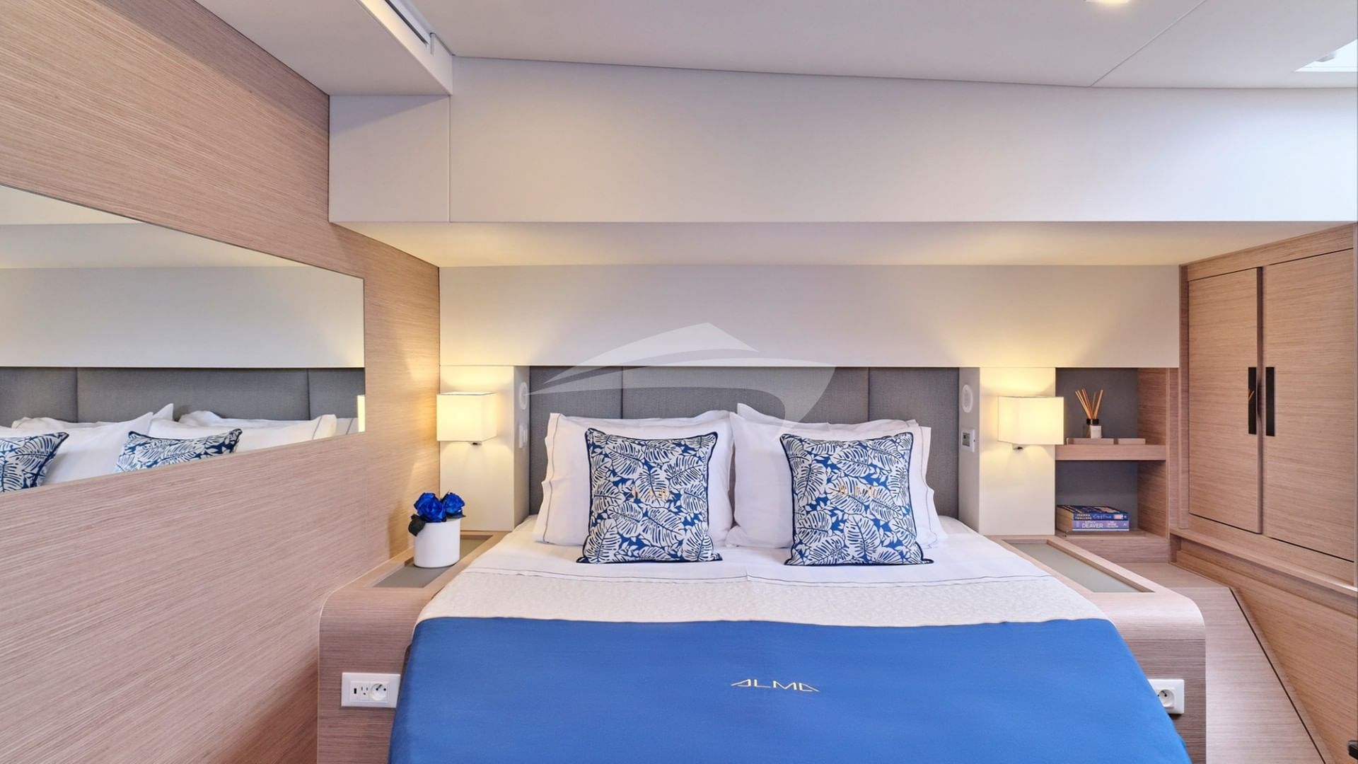 ALMA a été conçu pour accueillir confortablement jusqu'à 10 personnes chartées dans 5 suites.