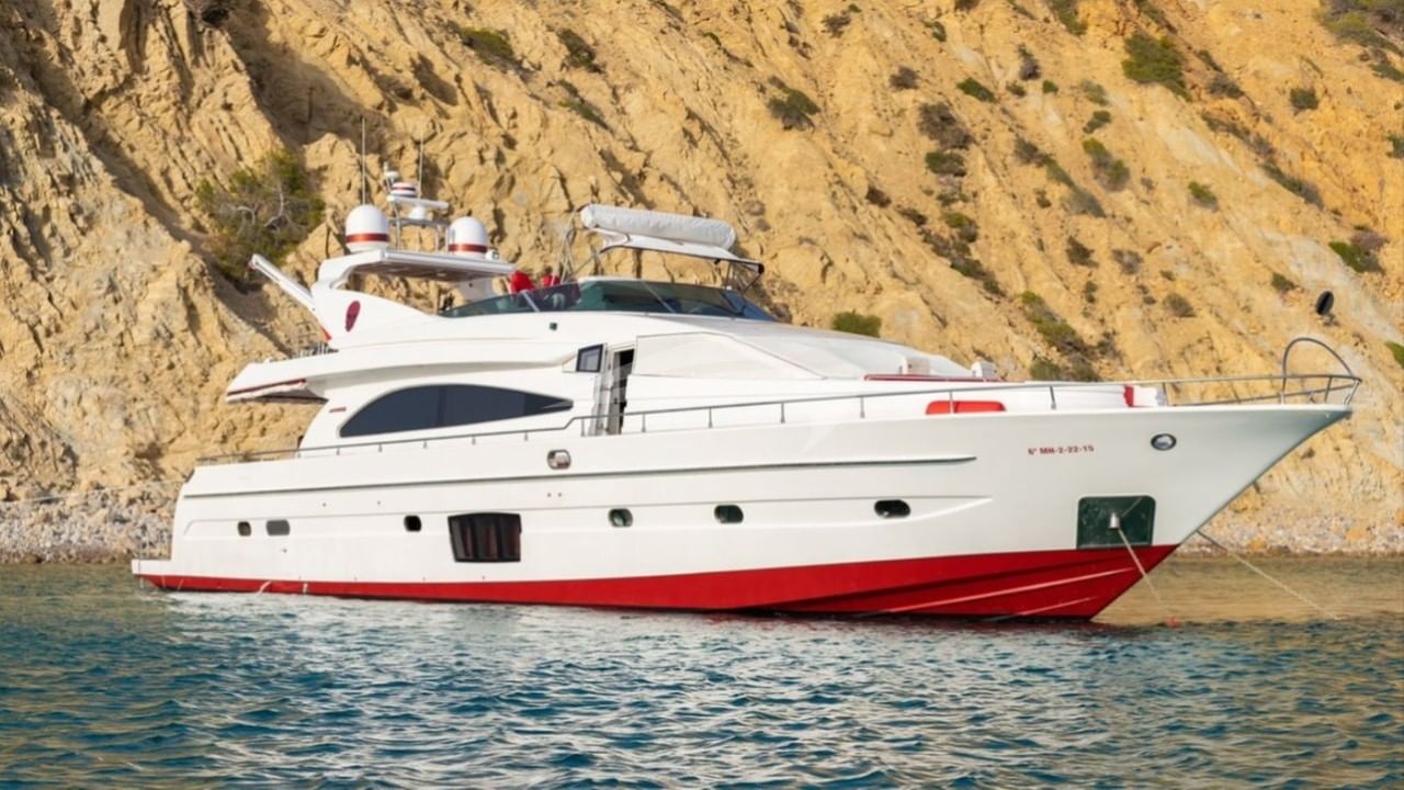Les équipements à bord incluent la climatisation, une machine à glaçons, un jacuzzi sur le pont, des stabilisateurs au mouillage, des coussins solaires, une plateforme de bain et une connexion Wi-Fi.
